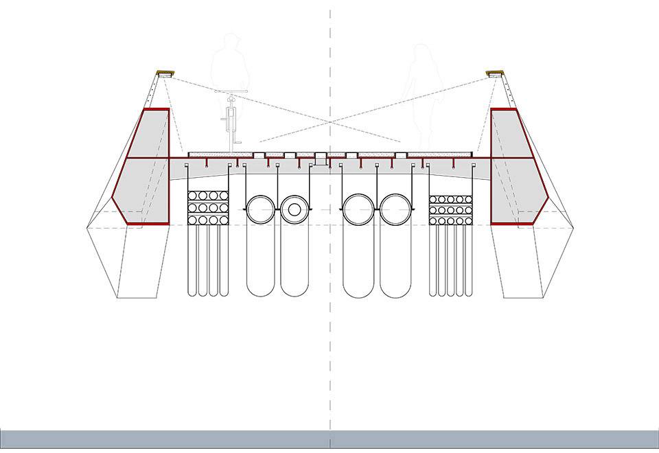 這座無機(jī)動(dòng)車通行的橋梁格外適合休閑和散步,人們可以在上面欣賞西面易北愛樂廳的雄姿或向東觀望正在施工的同為gmp設(shè)計(jì)的易北橋地鐵站。作為易北河橋旁的重要建筑,新建地鐵站以其極富當(dāng)代特色的鋼拱桁架主體回應(yīng)了古老的橋梁結(jié)構(gòu),成為易北河北航道上矚目的景觀。