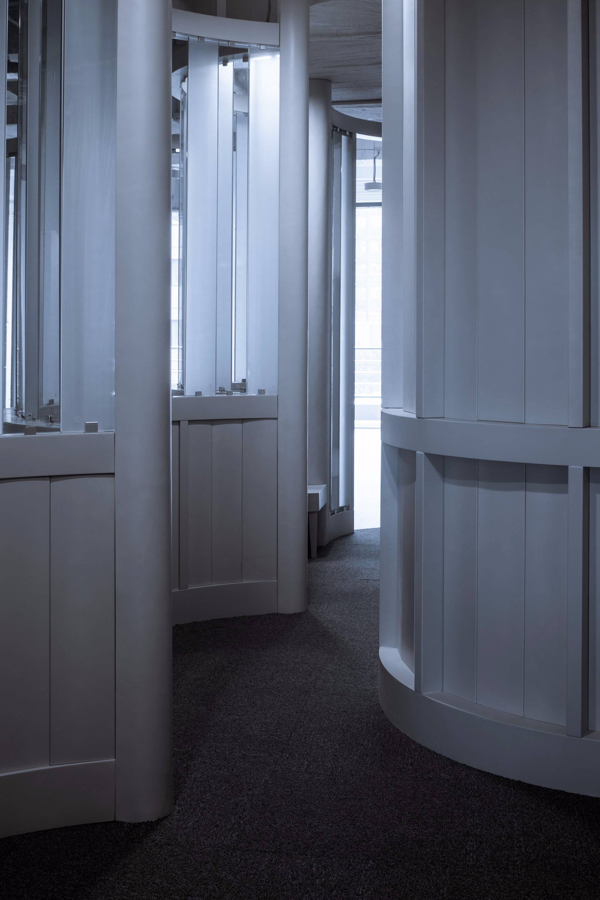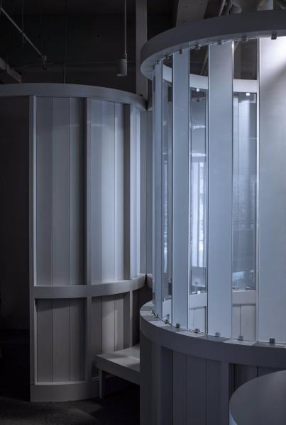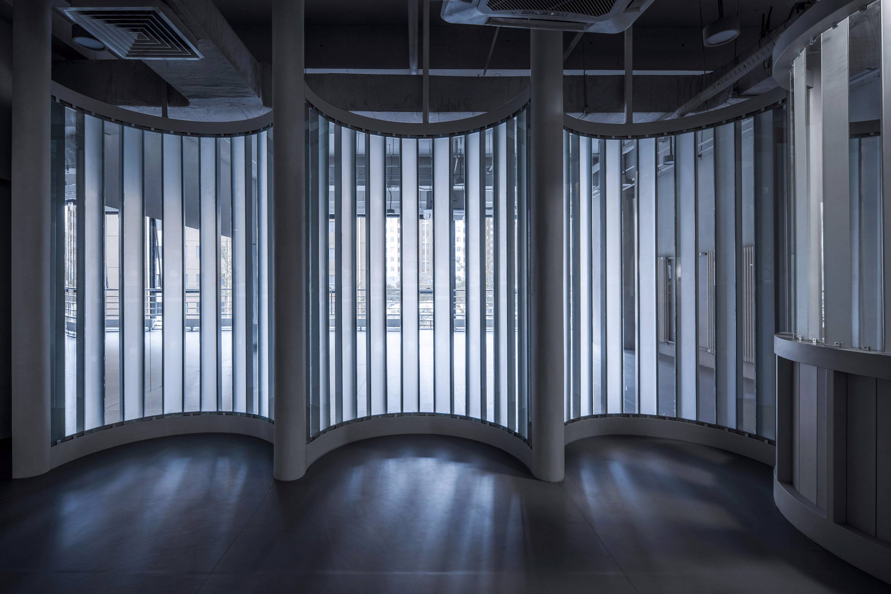 這個項目不僅是一個室內(nèi)項目,本質(zhì)上是視線互相穿梭的三維室內(nèi)裝置。它也不僅是視覺對象,更是個適合人們進入的溫柔圓形容器,使用者常形象地稱這里的圓形空間為“大花瓶”。人們進入其中,他們從內(nèi)部而不僅是從外觀上理解它。