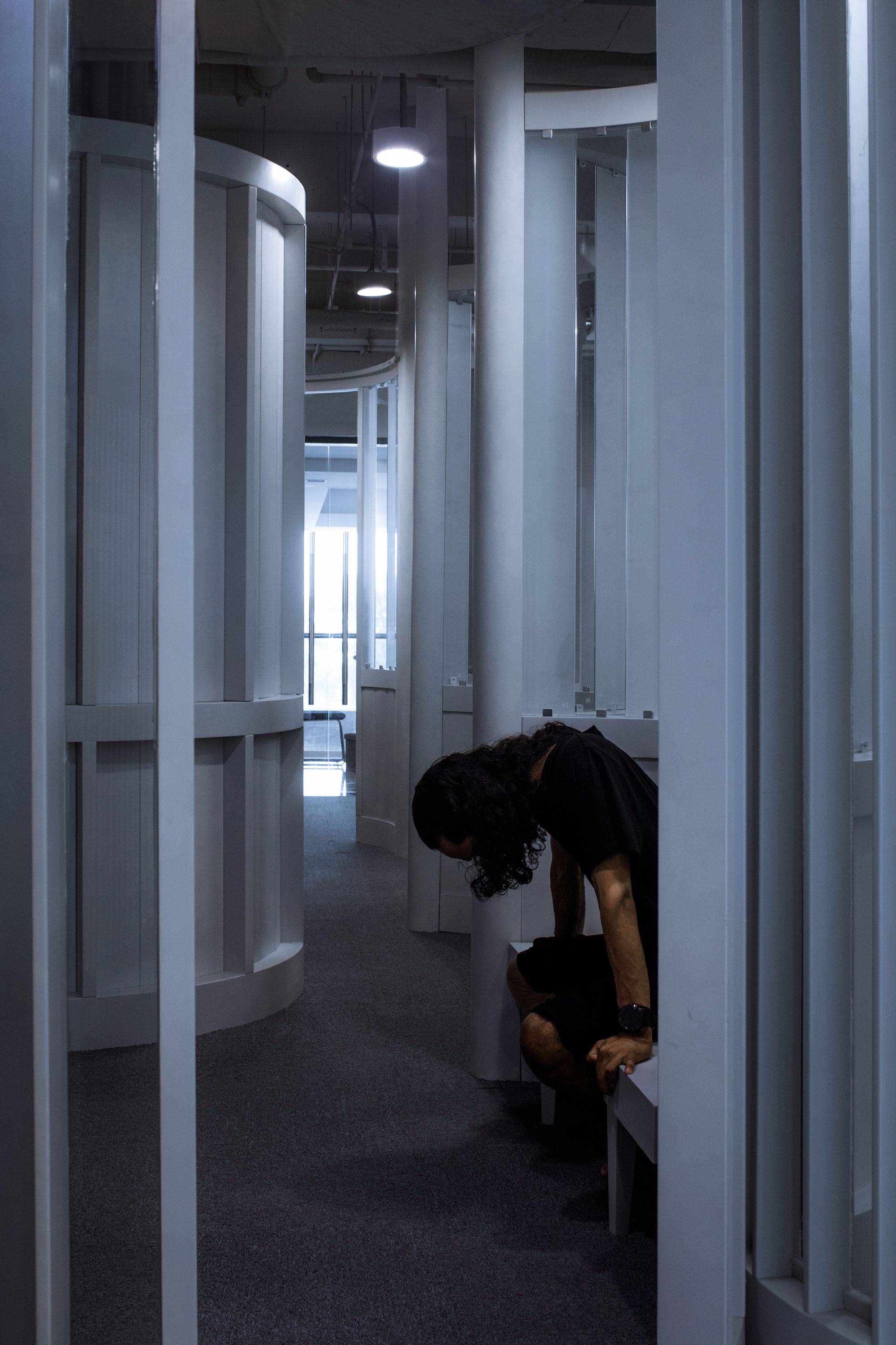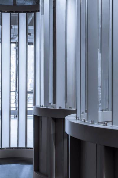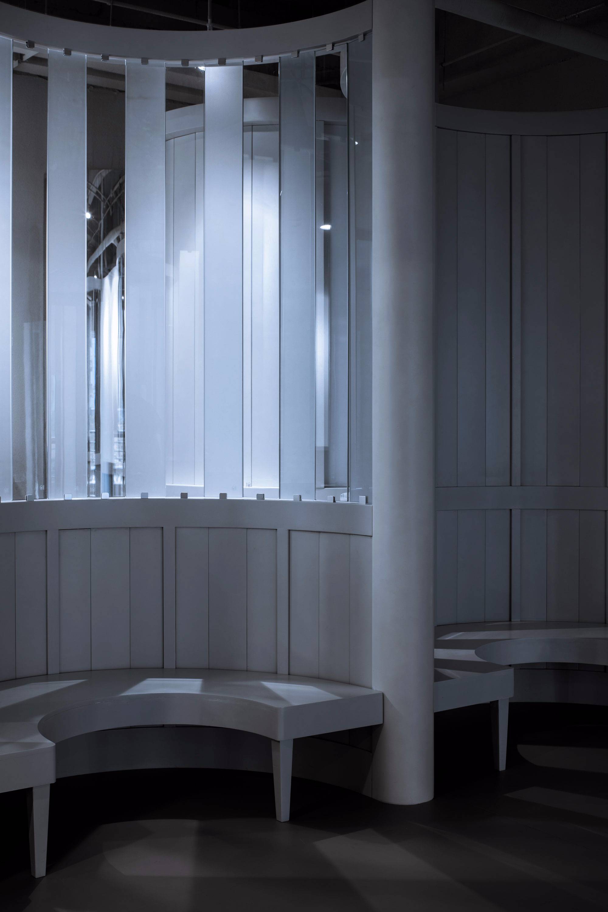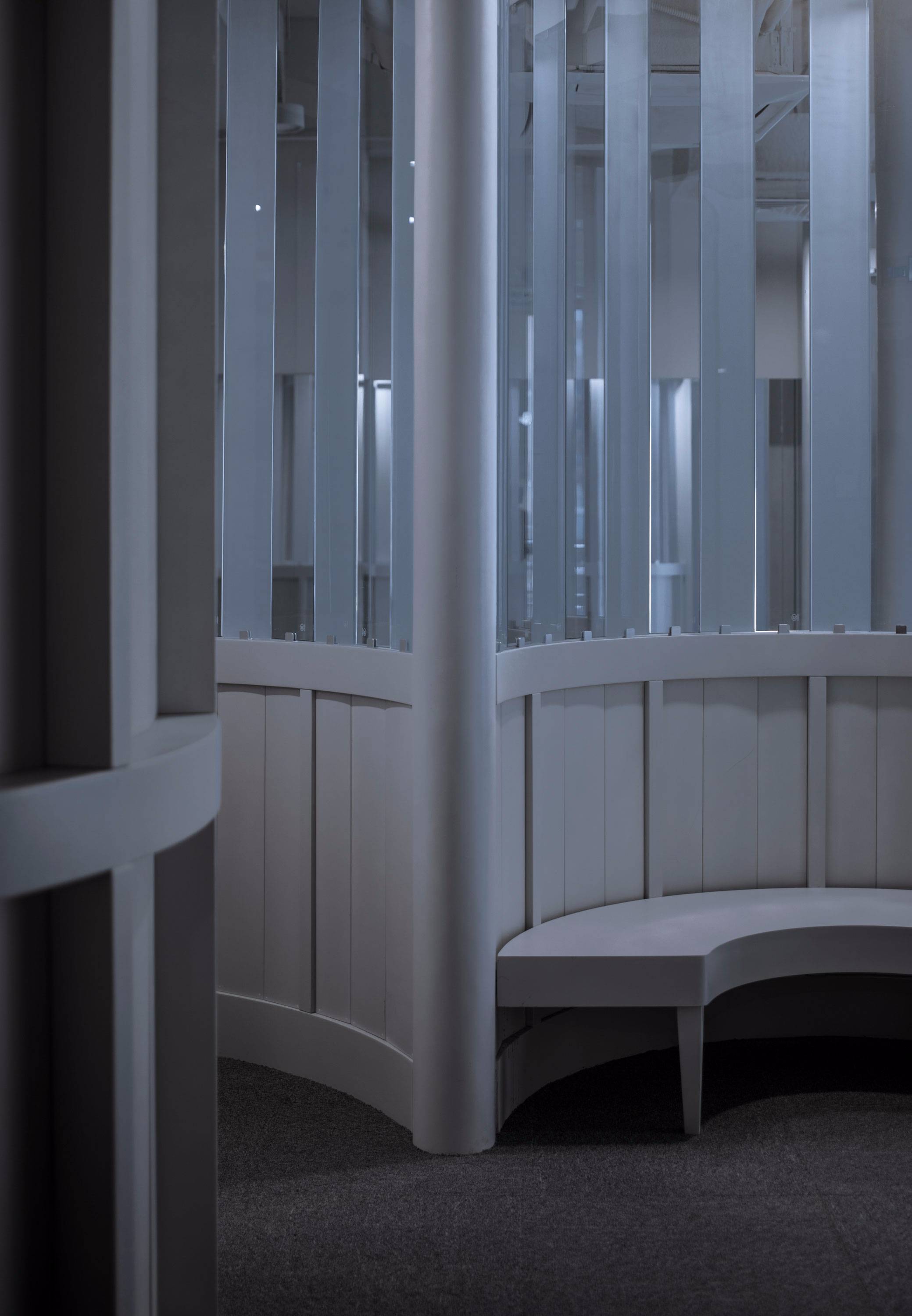 這個項目不僅是一個室內(nèi)項目,本質(zhì)上是視線互相穿梭的三維室內(nèi)裝置。它也不僅是視覺對象,更是個適合人們進入的溫柔圓形容器,使用者常形象地稱這里的圓形空間為“大花瓶”。人們進入其中,他們從內(nèi)部而不僅是從外觀上理解它。