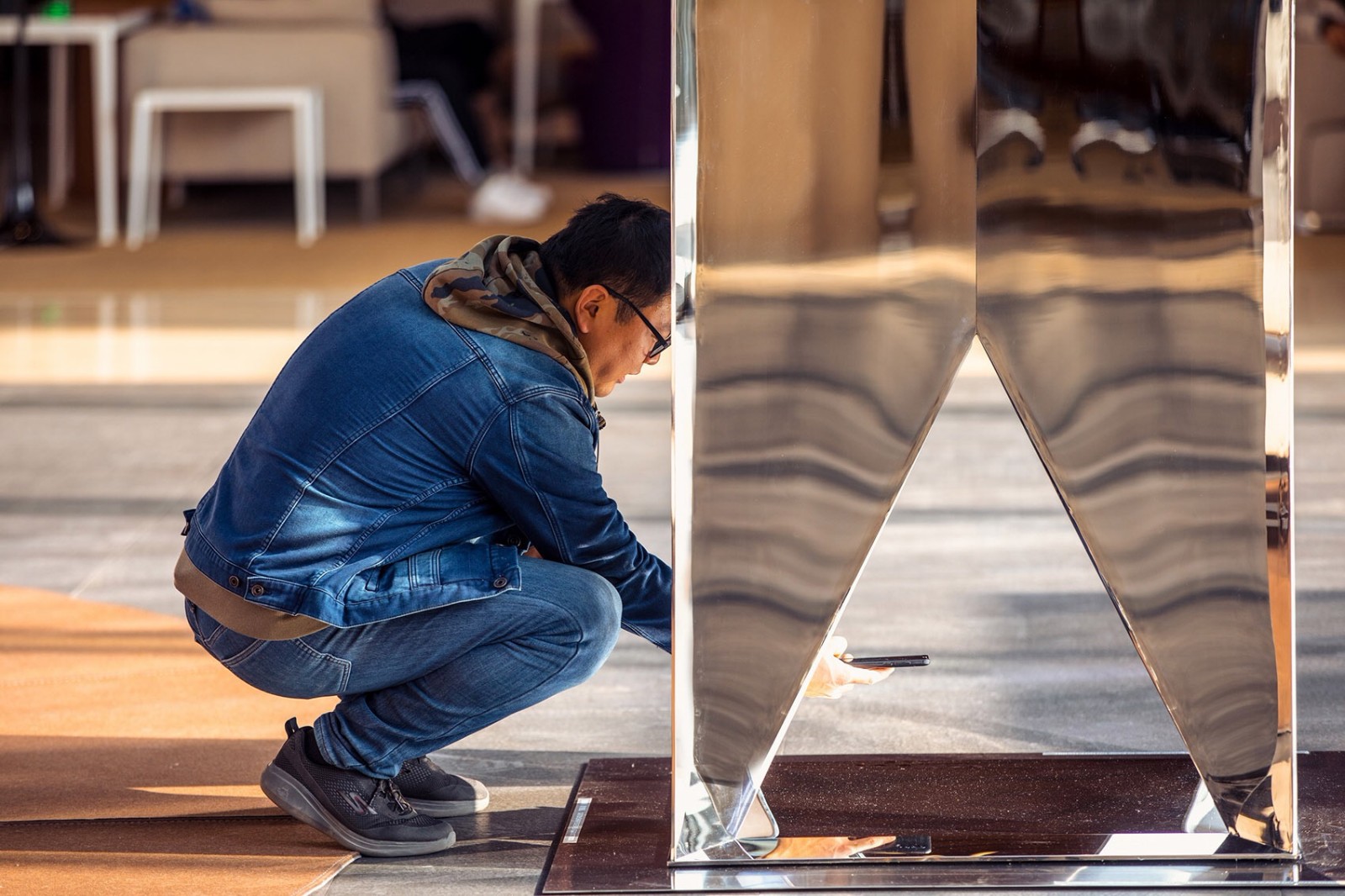 如果說,鏡面營造出的倒影世界充滿思考與禪意,那么鏡面以外心靈空間,則是我們最關(guān)心的?!扒f生曉夢迷蝴蝶”,奔波于城市當(dāng)中,游走鏡面內(nèi)外,找到屬于自己的心靈空間,了解自己,愛自己。