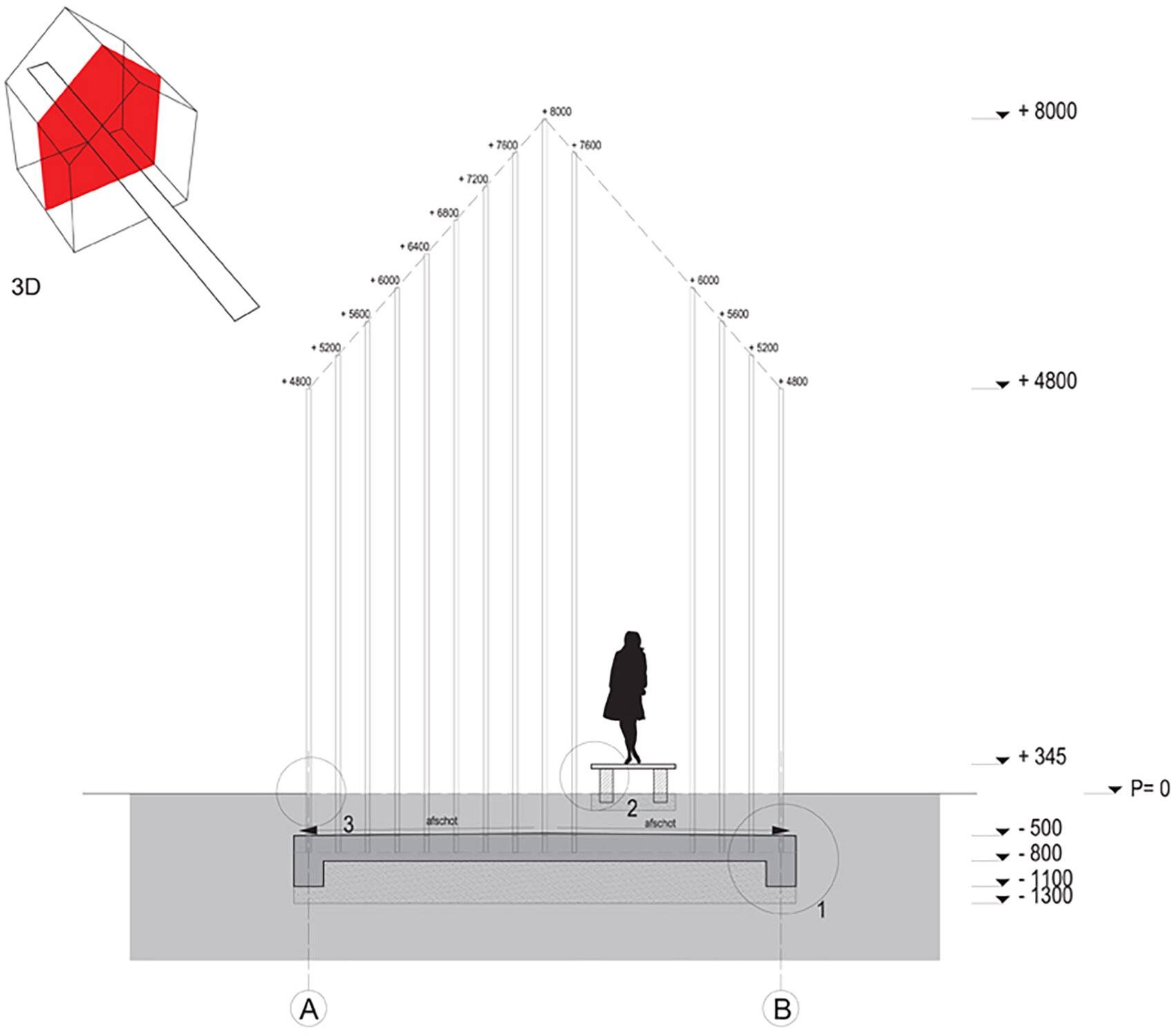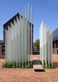 紀(jì)念裝置因生長(zhǎng)的植被而富有自然的動(dòng)態(tài)感,不斷生長(zhǎng)的植被使它能保持活力。裝置不是實(shí)心的體塊,而是透明開放的結(jié)構(gòu)。