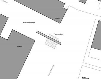 裝置內(nèi)部由平臺(tái)與庭院相連。平臺(tái)為裝置提供了與外部的聯(lián)系,并在建筑群環(huán)繞的開放空間中提供了空間起點(diǎn)。該平臺(tái)增強(qiáng)了空間的交流性,促進(jìn)了Goitke大街上正在創(chuàng)建的創(chuàng)意性公共空間的發(fā)展。裝置寓意著在過(guò)去中體驗(yàn)現(xiàn)代,而平臺(tái)則象征著通往未來(lái)的第一步。