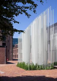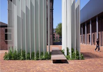 隱喻上來(lái)說(shuō),容納紡織品博物館的Mommerscomplex是一座有生命的紀(jì)念物,那么是否能夠通過(guò)引入有生命的物質(zhì)建造出仿佛能夠不斷生長(zhǎng)的紀(jì)念裝置呢?新的裝置可以看作是對(duì)工業(yè)園的補(bǔ)充:其形狀能使人聯(lián)想到高高的廠房,就像是紡織博物館建筑結(jié)構(gòu)的翻版。