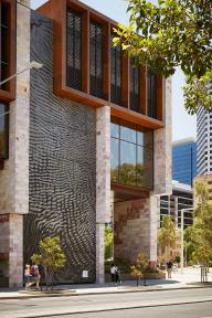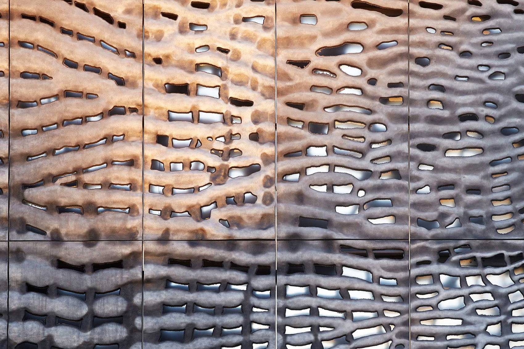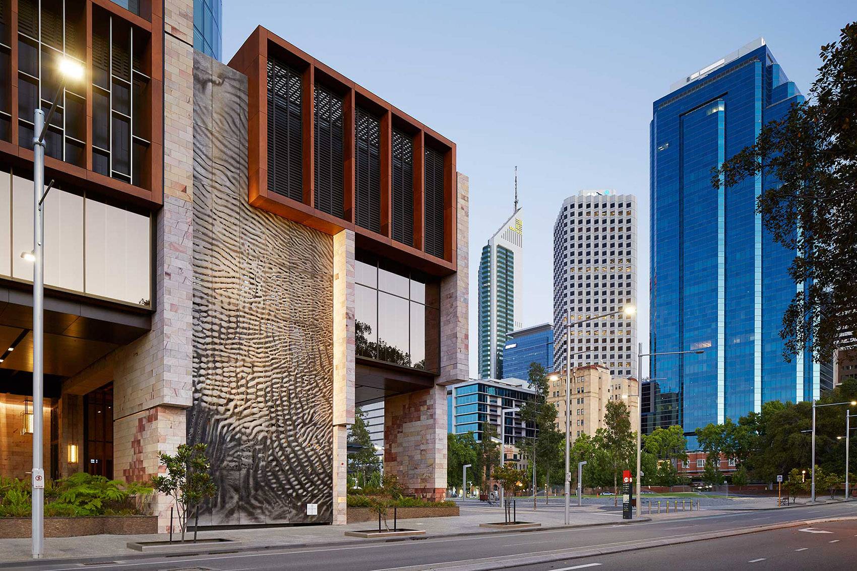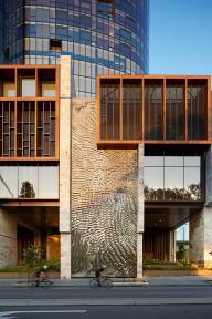 澳籍華裔藝術家Catherine Woo獲邀為澳大利亞珀斯的全新麗茲卡爾頓酒店打造一面外立面。她的作品“瀑布”展示了一種地方感,起伏的紋理表面以附近的天鵝河以及著名的金伯利峽谷給與了藝術家創(chuàng)作靈感。由回收鋁制成,波紋表面的反光層通過響應光線的材料而顯得栩栩如生,用規(guī)模和反射創(chuàng)造了一個有力的物理存在。