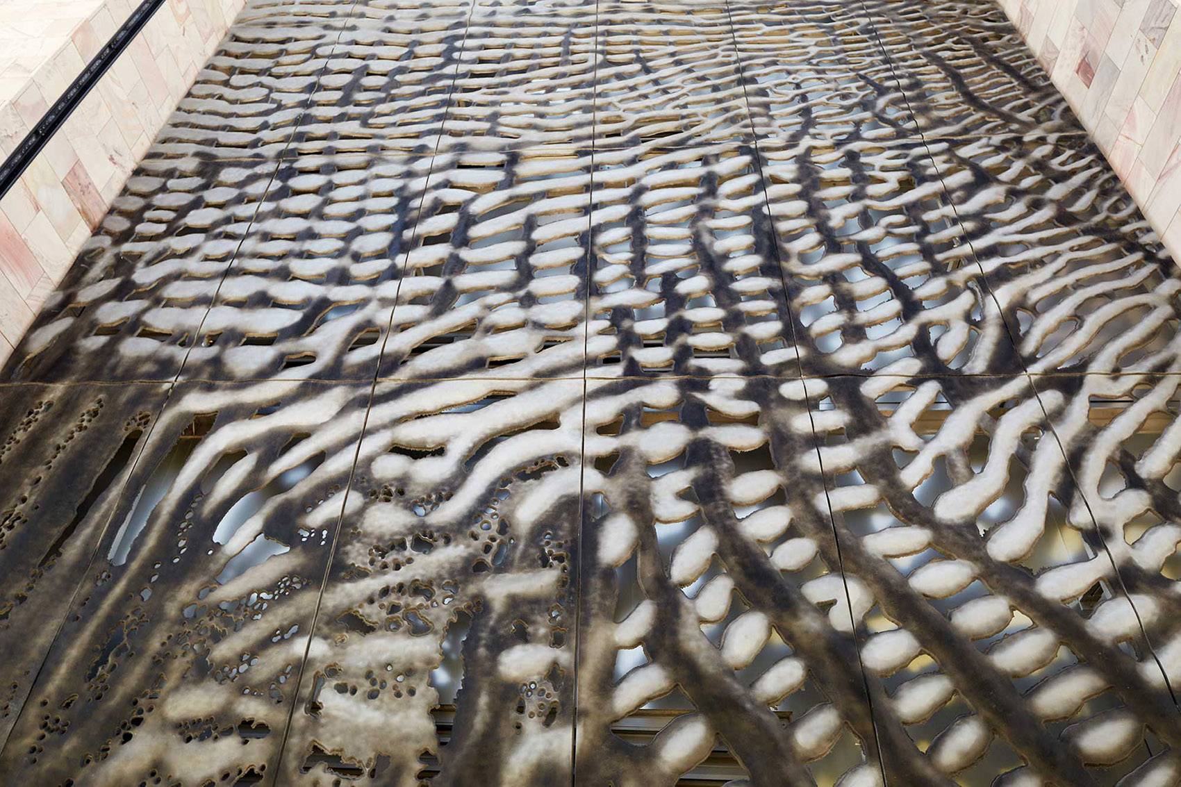 ▲“瀑布”由回收鋁制成,波紋表面的反光層通過響應光線的材料而顯得栩栩如生