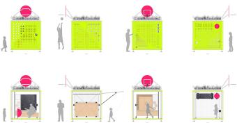 Catalyst Cube裝置是一種工具,能夠激發(fā)市民們參與未來永久性設計和城市環(huán)境設計的欲望。它在設計和構造上都極具靈活性,可以支持從籃球比賽和展覽、到社區(qū)活動和鄰里聚會等各種活動。作為一種催化劑,該裝置致力于在其所在的城市環(huán)境中增加人們互動、交流和發(fā)展的機會,從而激發(fā)城市活力,并相繼在不同的城市節(jié)點上發(fā)揮作用。當城市的物質(zhì)和社會結構不斷發(fā)生變化的時候,Catalyst Cube可以為人們提供一個在一定的街區(qū)范圍內(nèi),自行定義和管理公共空間的機會。