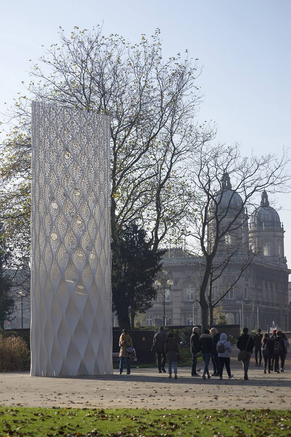 “太陽之門”(Solar Gate)位于英國赫爾,是一個(gè)利用太陽校準(zhǔn)來指示重要時(shí)刻和日期的裝置。創(chuàng)新型的超輕雙殼結(jié)構(gòu)是針對(duì)場所而設(shè)計(jì)的,能夠?qū)﹃P(guān)鍵的歷史事件以及與古老的貝弗利門(Beverley Gate)相鄰的女王花園(Queens Gardens)的文化環(huán)境做出回應(yīng)。