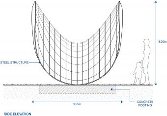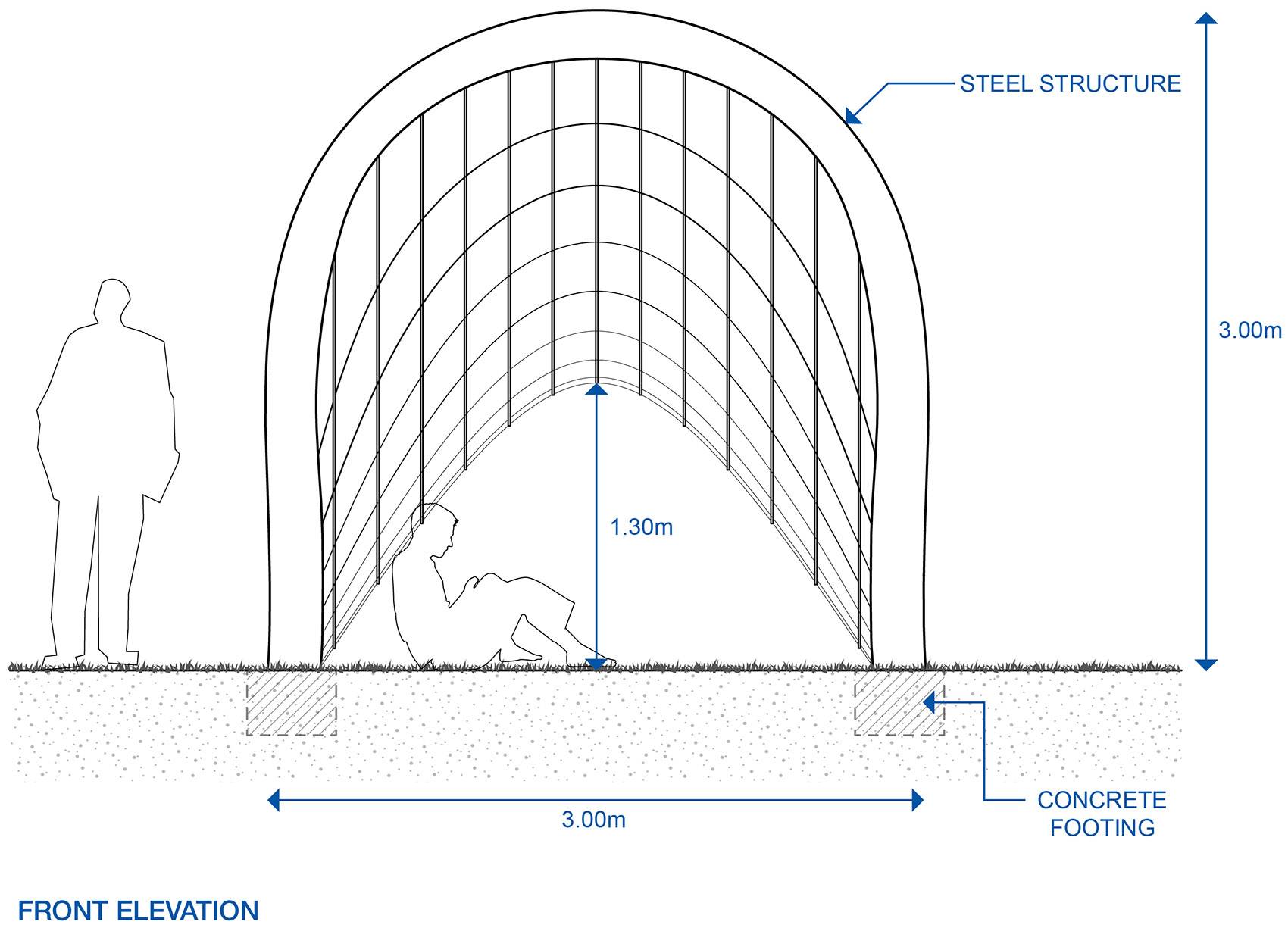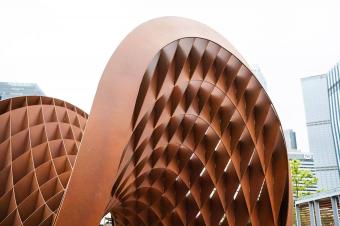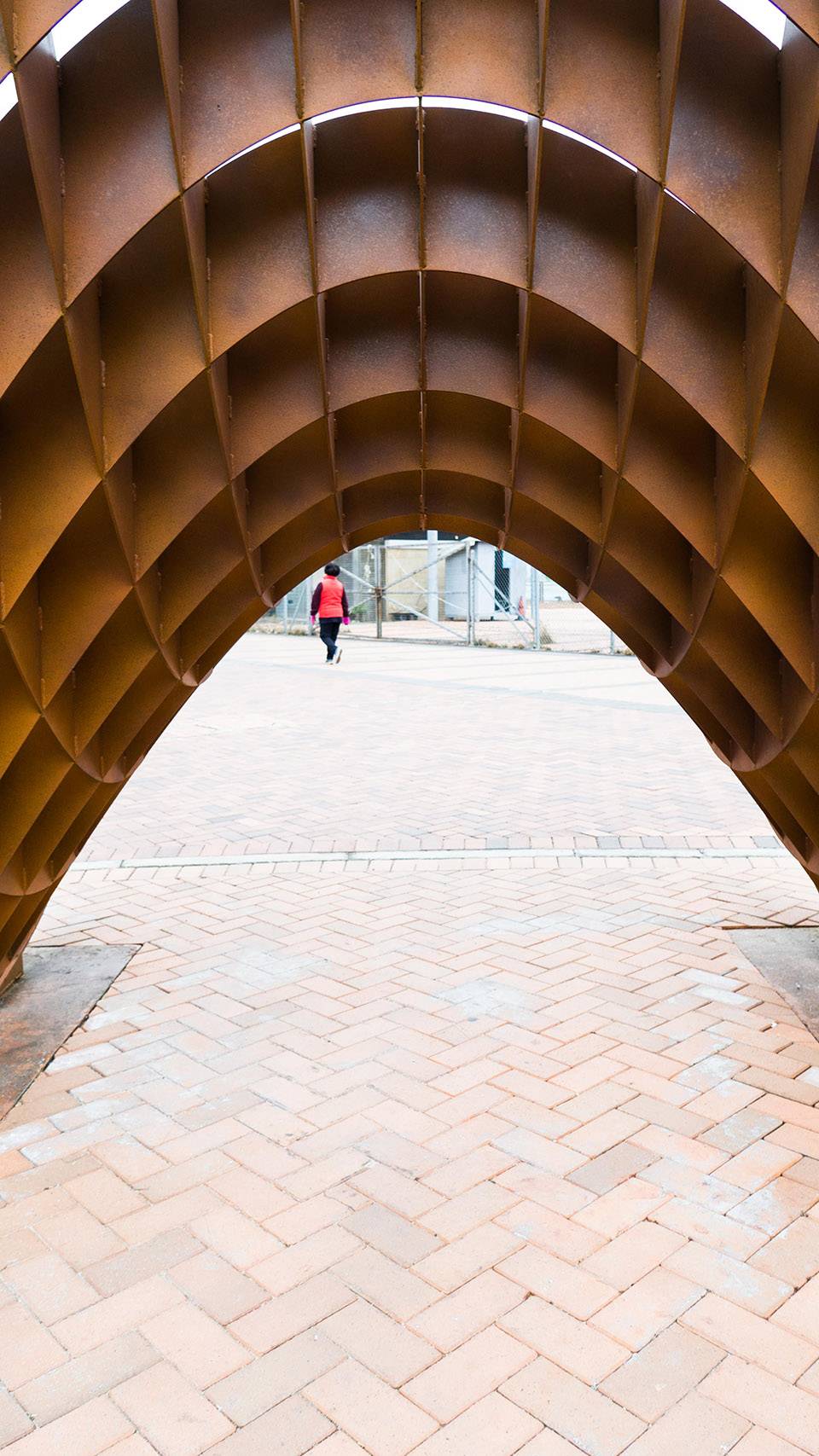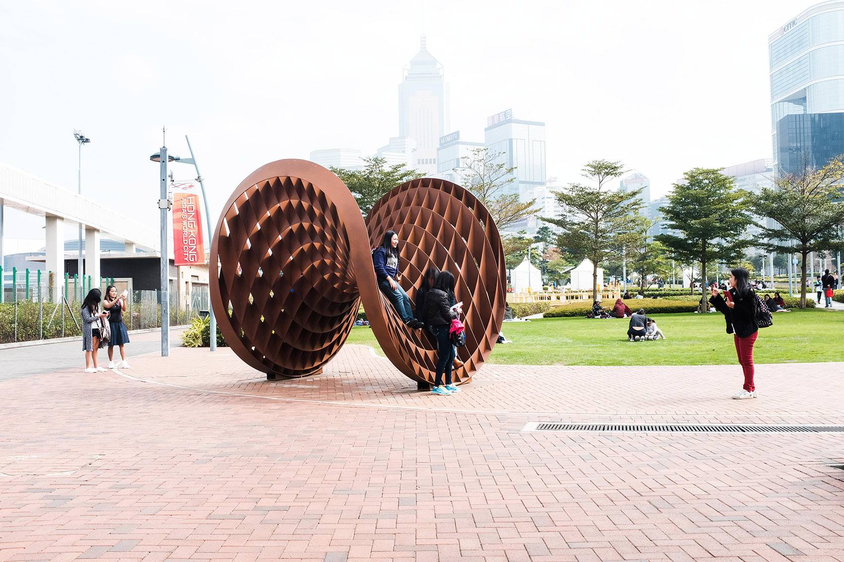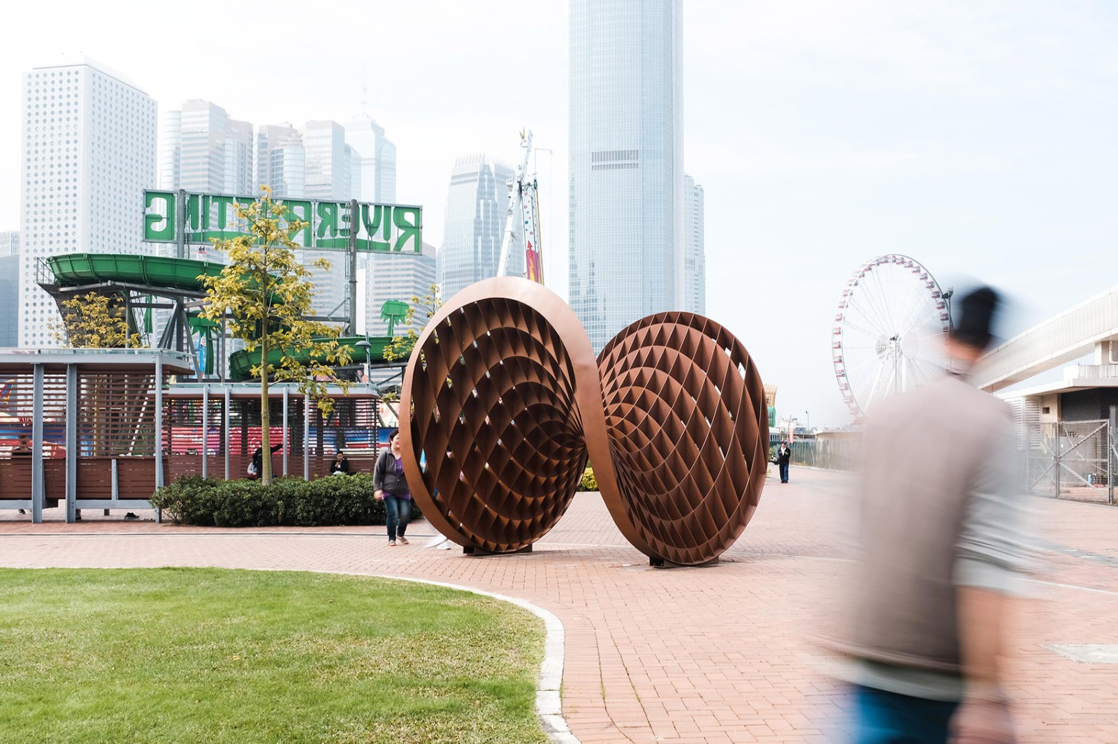 選用耐候鋼作為雕塑材料,使設(shè)計師得以引入一個時間的元素于作品中——耐候鋼將逐漸氧化及改變顏色,如同自然變換帶來的改變——水漲石枯,或甚至那些因填海及挖掘消失的事物。