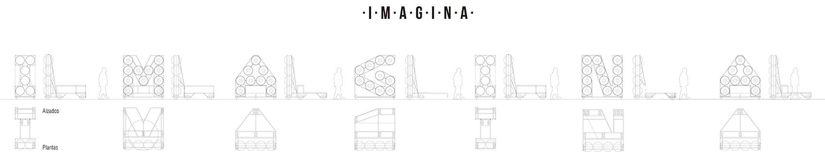 2017年夏季,Imagina Madrid 計(jì)劃決定以其標(biāo)志性的七個(gè)字母——I、M、A、G、I、N、A為原型讓人們參與設(shè)計(jì)。在活動(dòng)過程中,這七個(gè)字母單體通過卡車被依次運(yùn)往了該計(jì)劃的9個(gè)站點(diǎn),旨在重新激活馬德里不同地區(qū)的公共空間。自2018年起,I、M、A、G、I、N、A這七個(gè)字母原型便成為了馬德里Matadero藝術(shù)區(qū)的一部分,也可稱得上是該原型系統(tǒng)的另一次新生。