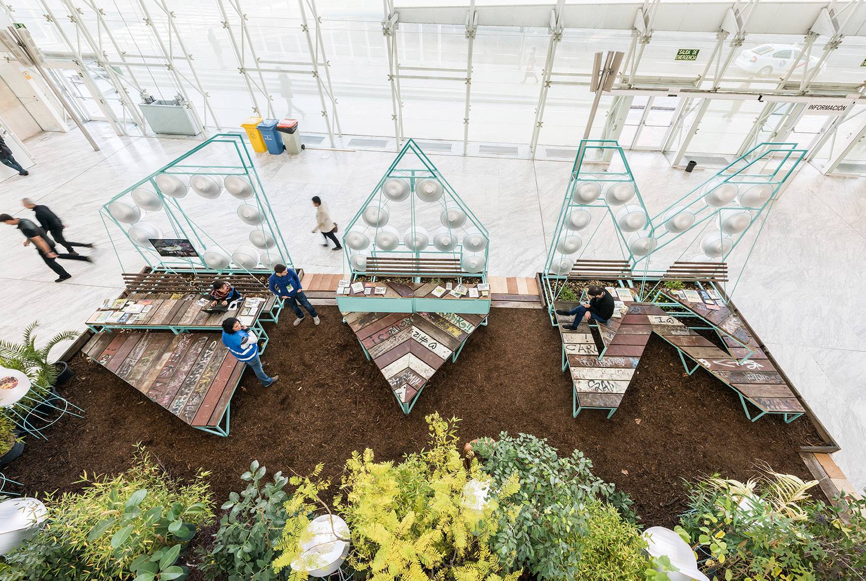 自2017年4月以來,M、A、D和P、A、Z等六個(gè)以字母為基礎(chǔ)造型的家具體量就一直位于Conde Duque文化中心的北院。該區(qū)域與附近的市立圖書館一道,致力于為青少年提供學(xué)習(xí)空間、為家庭提供聚餐空間、為小孩子提供玩??臻g、為退休人士提供休息空間。這是該原型系統(tǒng)的第三次亮相。