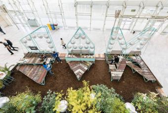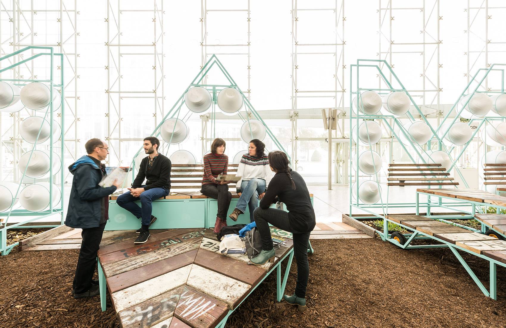 2016年11月,馬德里市議會(huì)全國(guó)環(huán)境大會(huì)(National Congress of the Environment,縮寫為CONAMA)召開。大會(huì)提出,材料可以作為工具來提供一種教學(xué)經(jīng)驗(yàn):以再利用、自然化、可持續(xù)性、二次使用性、社會(huì)凝聚力、可得性、開源性和參與性等為基礎(chǔ),通過材料的實(shí)際處理和物質(zhì)性,傳達(dá)出馬德里的環(huán)境政策。隨后,該屆大會(huì)選取了M、A、D等三個(gè)字母作為家具的基礎(chǔ)造型,參展者可根據(jù)自己的概念在其上增加設(shè)計(jì)元素。這便是該原型系統(tǒng)的首次亮相。