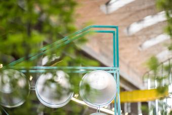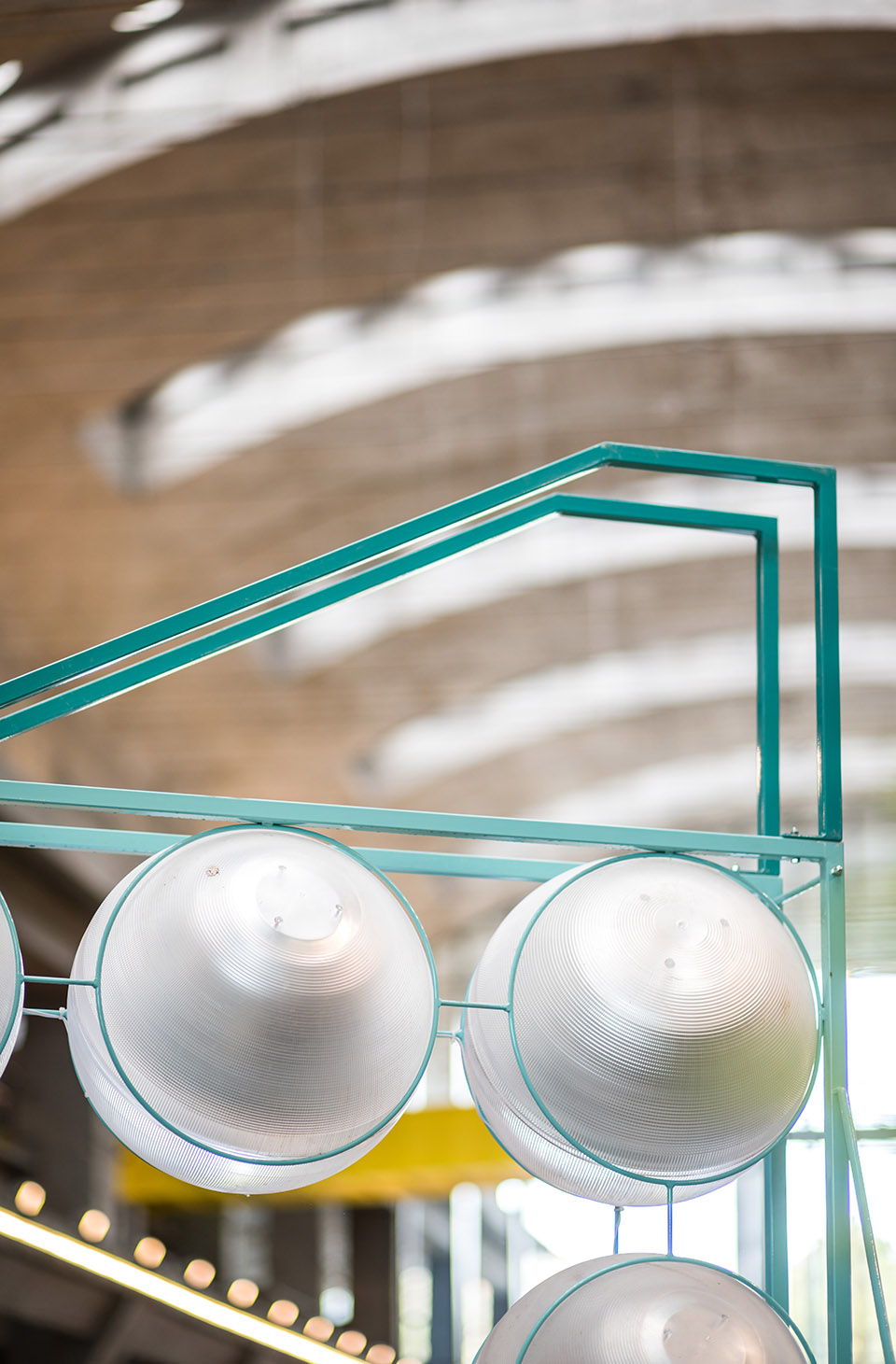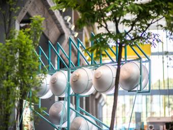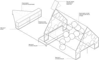 ▲回收廢棄燈具,搭配新的LED元件,創(chuàng)造出一個(gè)全新的照明和標(biāo)識(shí)系統(tǒng),并將其與家具體量的金屬框架相結(jié)合