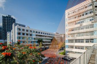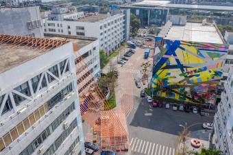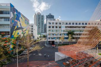 本次深港城市建筑雙城雙年展(UABB)鹽田分展主題為“對(duì)流城市”。展覽場(chǎng)地位于沙頭角保稅區(qū)。室內(nèi)展場(chǎng)設(shè)置位于八號(hào)樓內(nèi)部一層至三層,室外展場(chǎng)位于8號(hào)樓至保稅區(qū)西門之間以及相鄰人行道空間。
