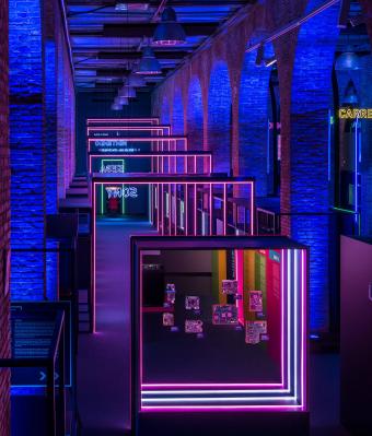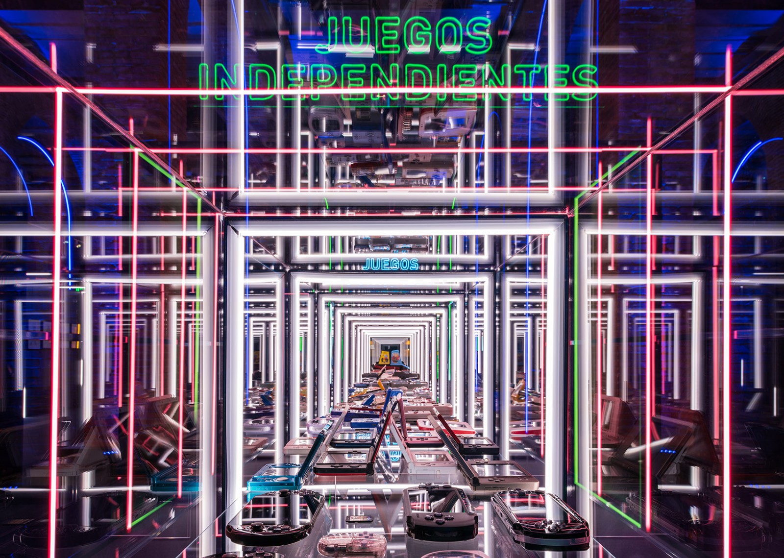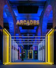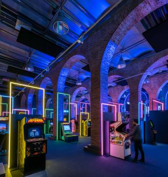 ▲一系列被彩色燈光照亮的拱形結(jié)構(gòu)容納著150款電子游戲機(jī) ?Javier de Paz García
