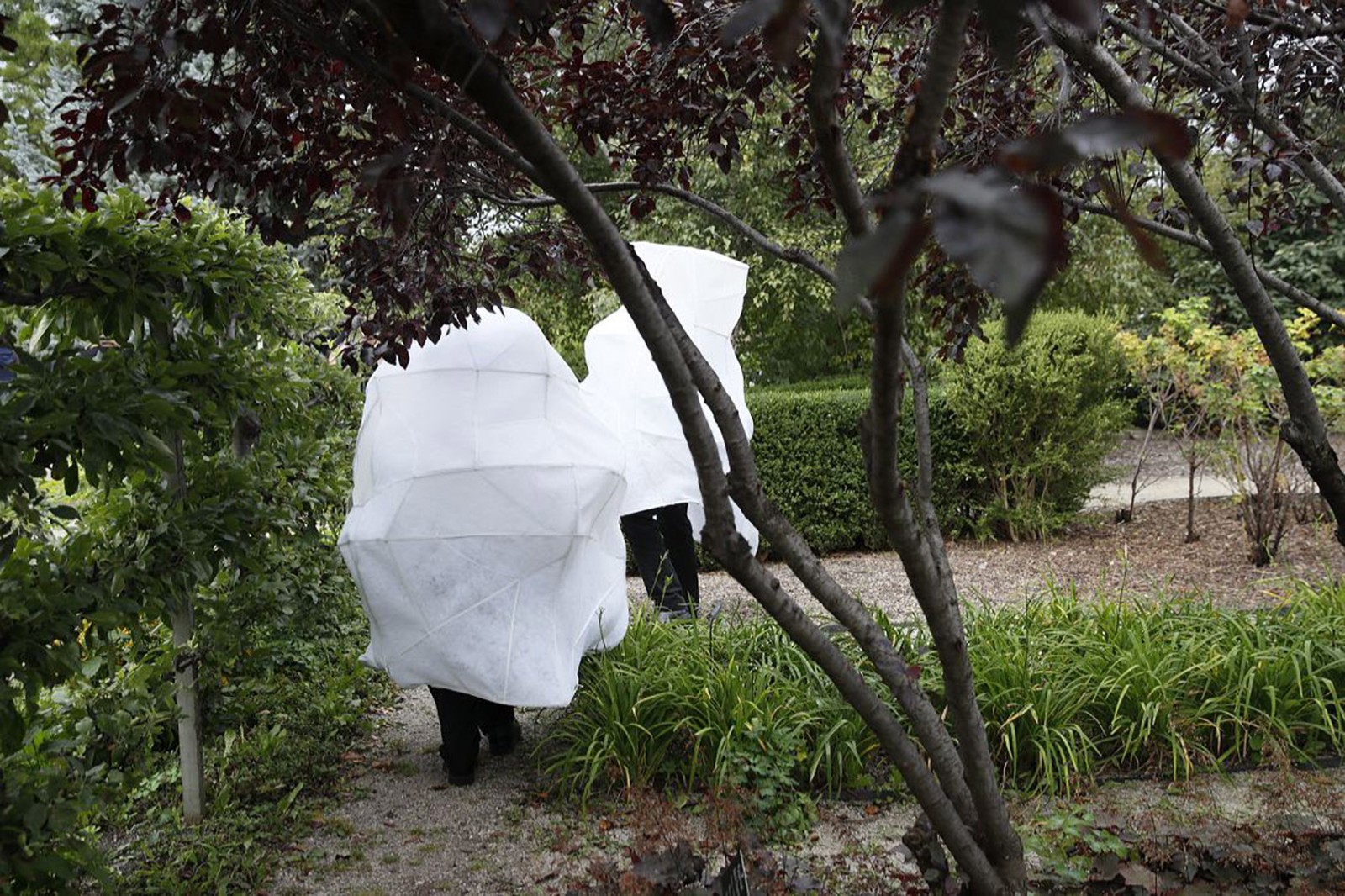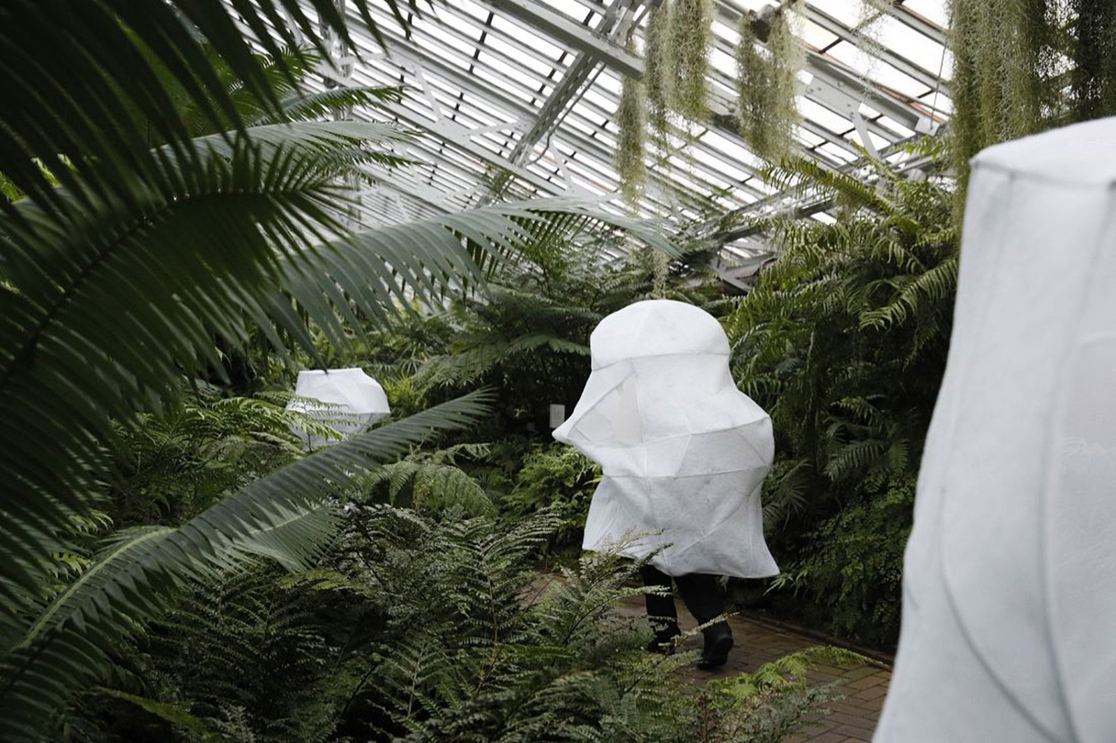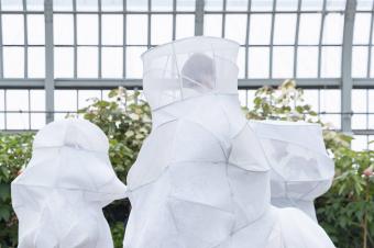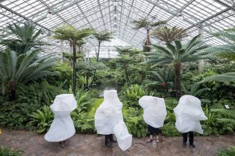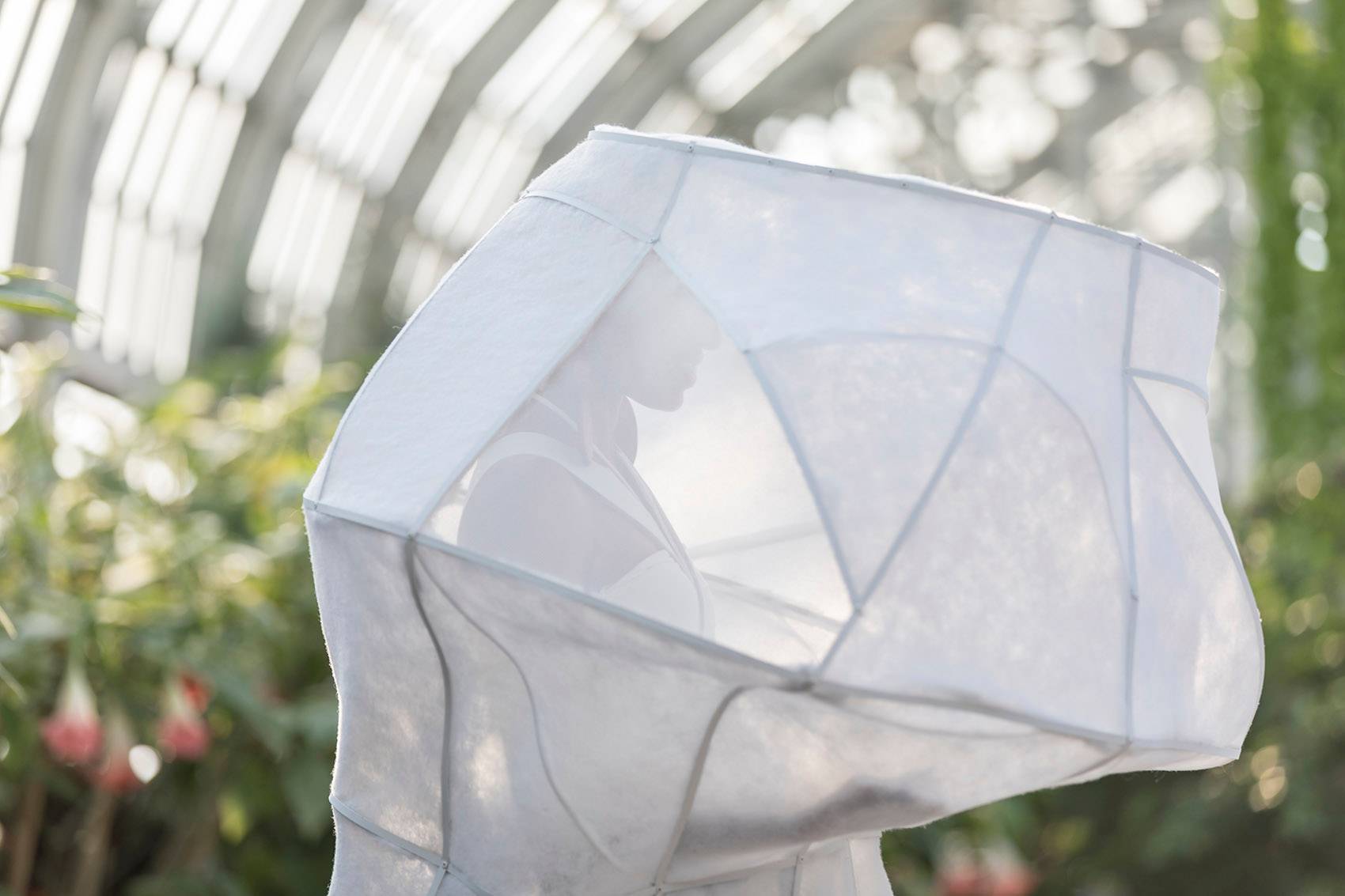 該項(xiàng)目的靈感來(lái)自于加菲爾德公園溫室中蔥郁的植被。事務(wù)所和Prva?ki一起,設(shè)計(jì)出一個(gè)空氣過(guò)濾網(wǎng)罩,使空氣在呼吸之間能夠得以凈化。該裝置部分是網(wǎng)紗,部分是實(shí)體遮蔽物。