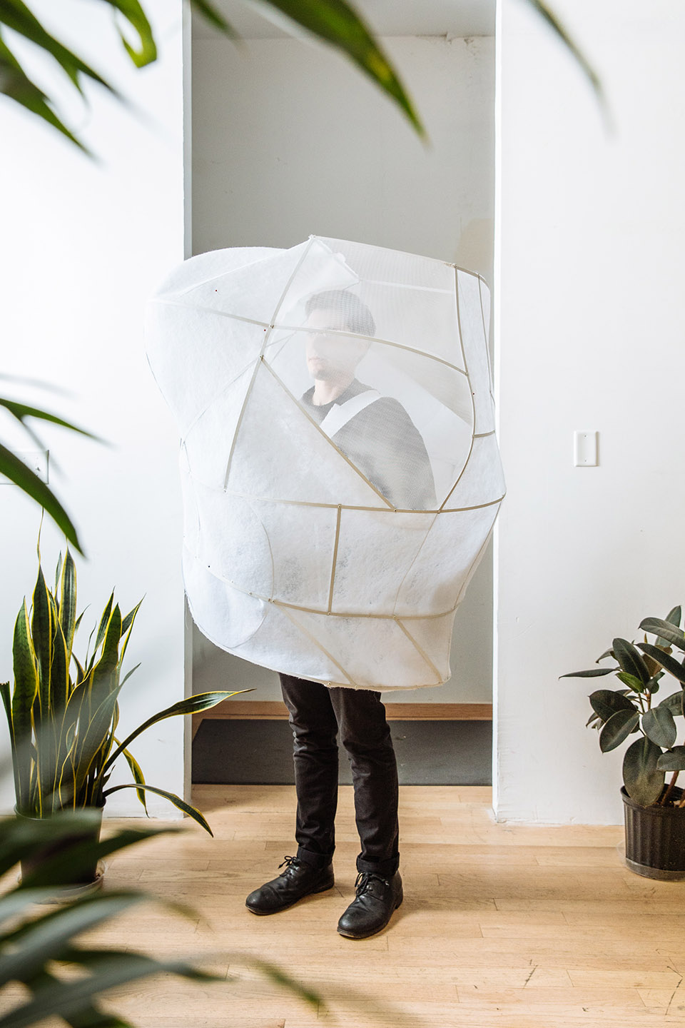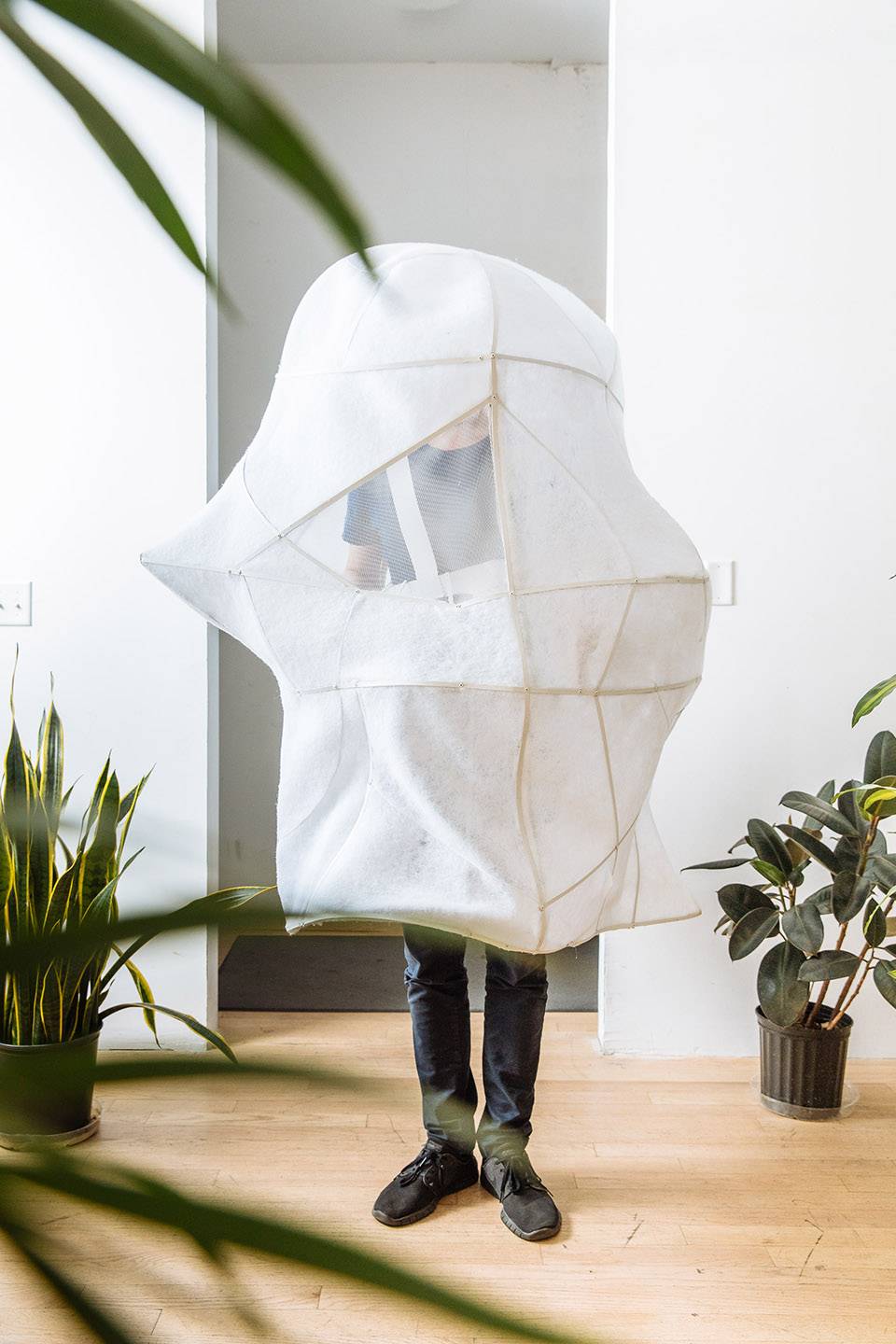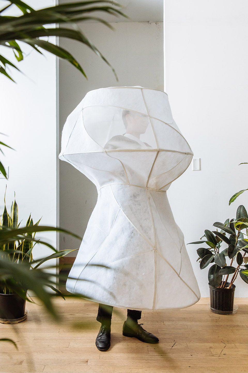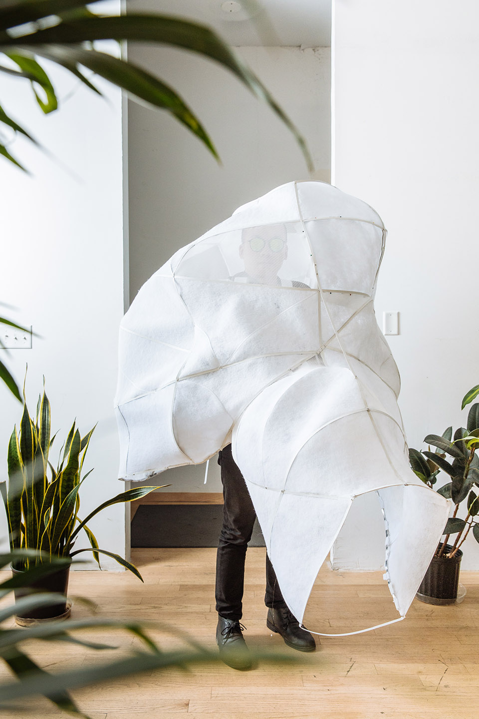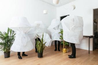 展出時(shí),裝置由來(lái)自芝加哥小型交響樂(lè)隊(duì)的音樂(lè)家們穿戴,其中包括薩克斯管,長(zhǎng)笛,長(zhǎng)號(hào)和人聲表演者。音樂(lè)家們演奏來(lái)自作曲家Veronika Krausas的原創(chuàng)音樂(lè)“關(guān)于空氣(De Aere)”。裝置和表演都是為了鼓勵(lì)觀眾去思考生活中一些復(fù)雜的問(wèn)題,例如整潔與污染的關(guān)系,又比如自我,身體,事物及自然間的區(qū)別。