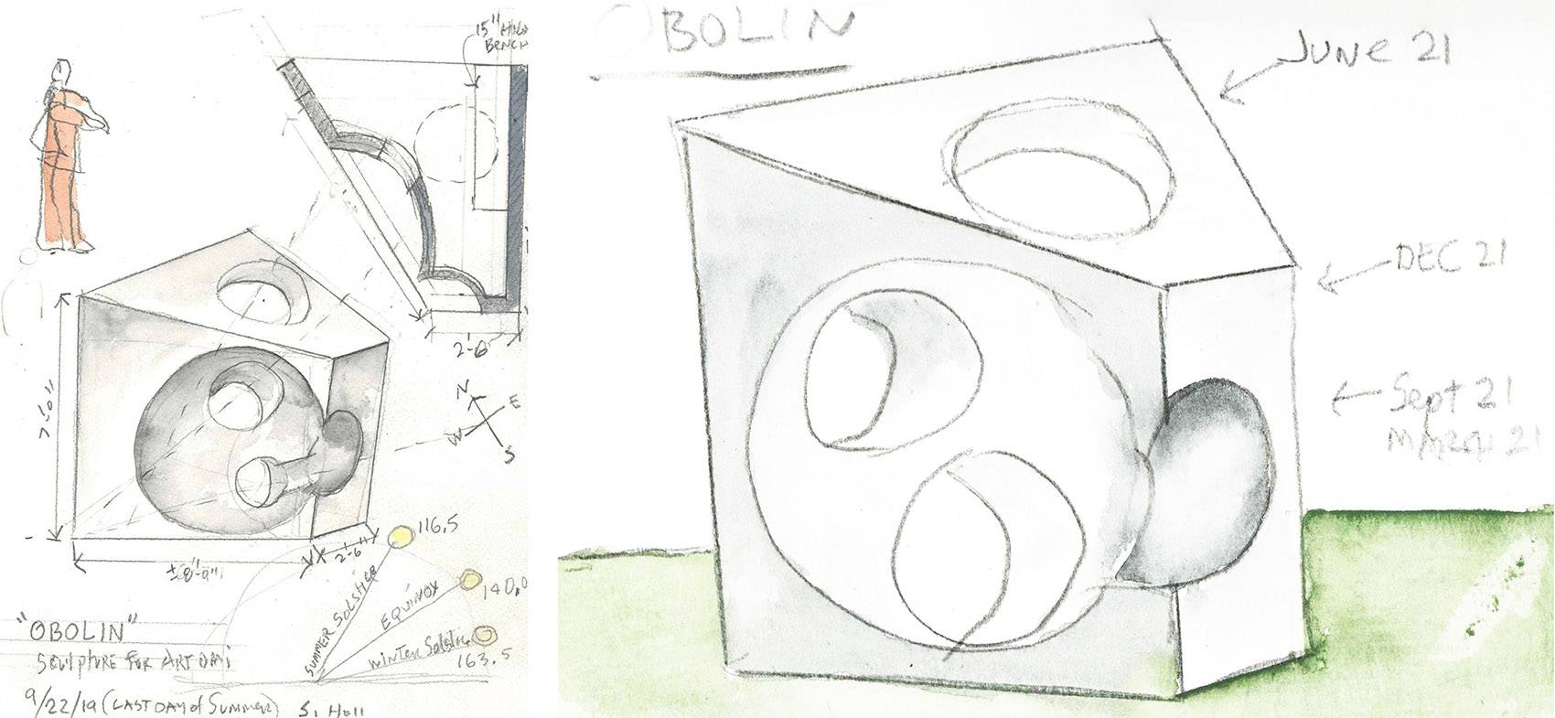 斯蒂文·霍爾四歲的女兒Io Helene為這件雕塑取名為Obolin。當(dāng)被問及Obolin的含義時,女孩回答道:“它正是你所想的意思。”