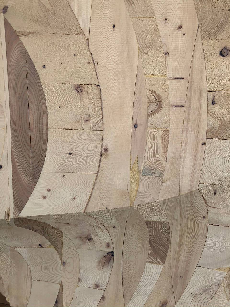 Obolin雕塑由本地制造的單片50英尺長的CLT薄板層層疊合制成,用7軸機(jī)械臂打磨,然后在現(xiàn)場進(jìn)行組裝。