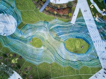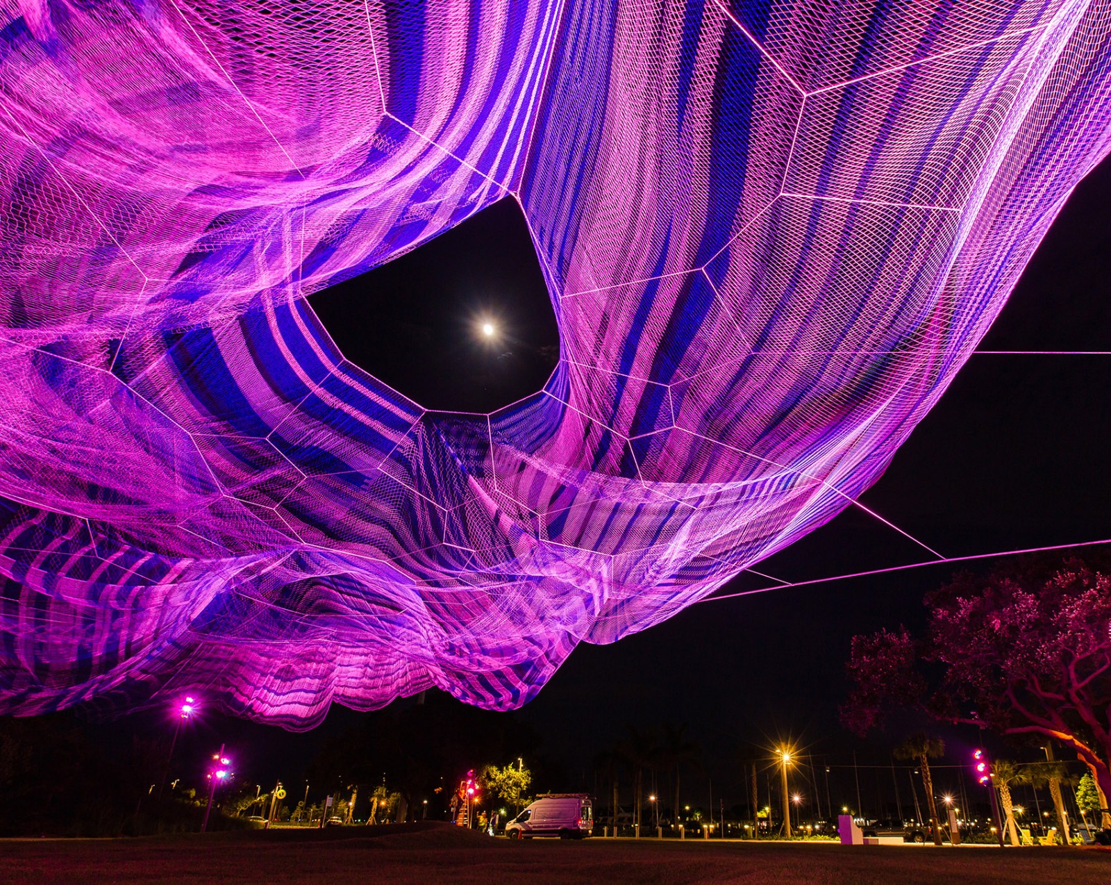 Echelman的藝術(shù)裝置為游人提供了一片綠洲,在這里,人們可以享有片刻的寧靜,感受與自然宇宙的聯(lián)系?!疤炜站褪俏宜囆g(shù)品的畫布” Echelman說道,“由于這件藝術(shù)品在室外,被安置在新鮮的空氣中,在疫情期間,它為人們提供了一個真實且安全的共享之地?!?/p>