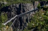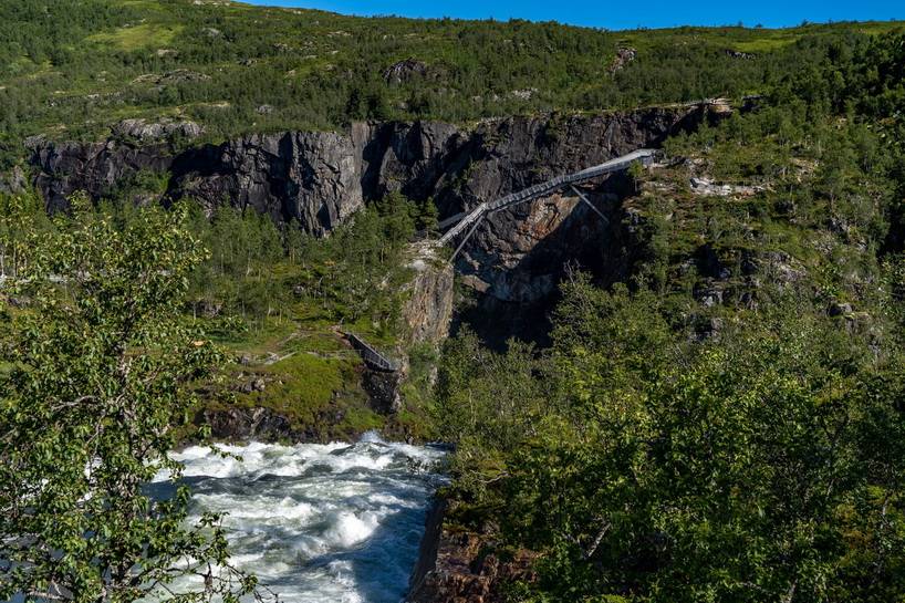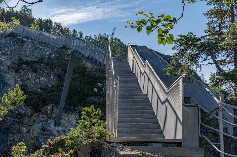 Carl-Viggo H?lmebakk建筑事務(wù)所與挪威公共道路管理局(NPRA)合作打造的沃林斯福森階梯橋橫跨47米(超過150英尺),99步階梯。橋兩端的高度差是16米(超過50英尺)。盡管橋梁的七個(gè)構(gòu)件被起重機(jī)適當(dāng)?shù)跗鸩⒃诂F(xiàn)場裝配,但整座階梯橋是由鋼制的,并被結(jié)實(shí)的巖石螺栓鉆孔嵌入巖石之中。項(xiàng)目經(jīng)理謝斯蒂·伍德(Kjersti Wold)評(píng)論道:“哈當(dāng)厄爾國家公園新開放的階梯橋項(xiàng)目是具有‘開創(chuàng)性的’。”