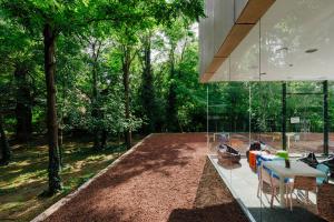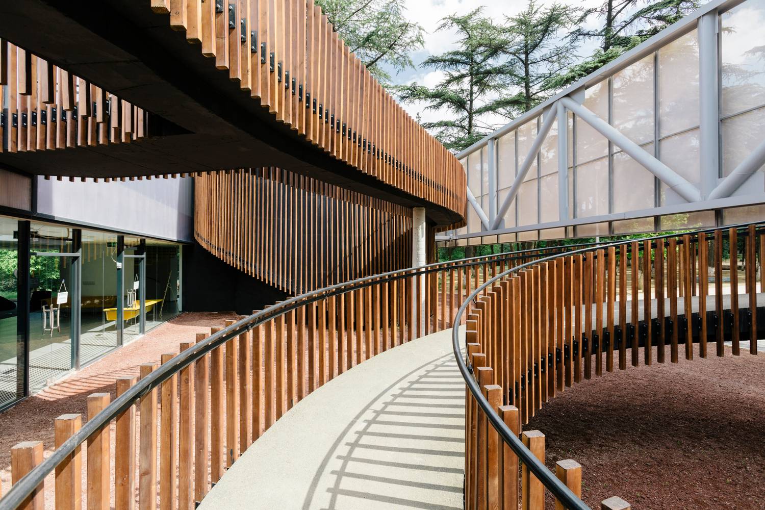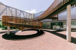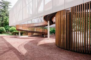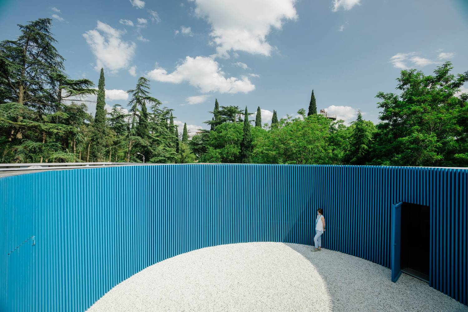 建筑上層的藍(lán)色圓形庭院也是一大亮點(diǎn),為內(nèi)部提供采光的同時(shí),也為各種室外活動(dòng)和陽(yáng)光下閱讀提供了完美的去處。
