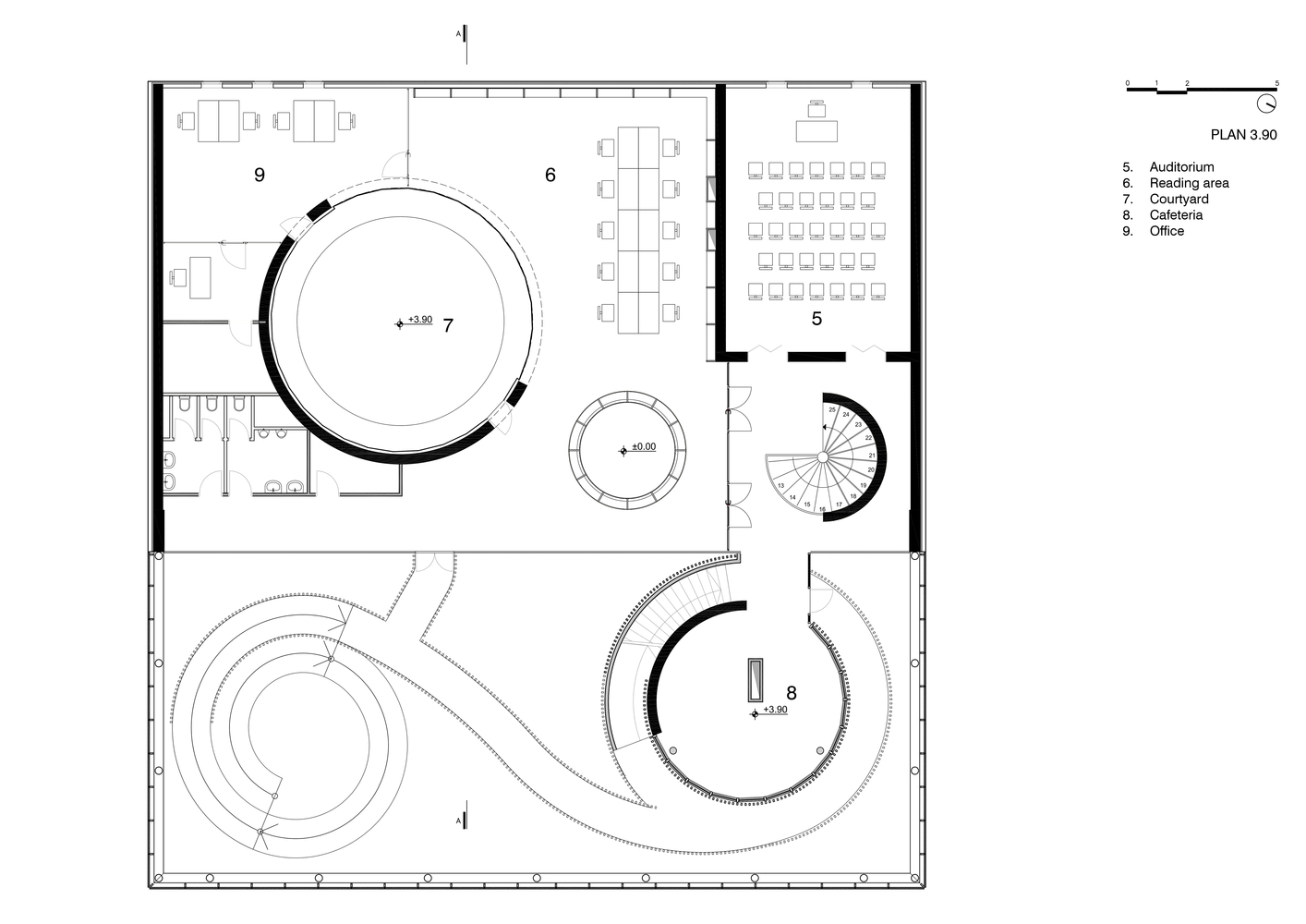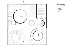 建筑位于公園的中心,所在的街區(qū)內(nèi)住宅被廣闊的工業(yè)區(qū)所包圍。該項(xiàng)目旨在填補(bǔ)當(dāng)?shù)匚幕逃O(shè)施的空白。建筑作為傳統(tǒng)和多媒體圖書(shū)館的結(jié)合供孩子和成年人使用,包括閱覽室、兒童游樂(lè)場(chǎng)以及講座和展示區(qū)域。媒體中心同時(shí)也為會(huì)議、音樂(lè)會(huì)和展覽提供場(chǎng)地。