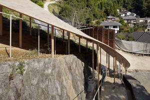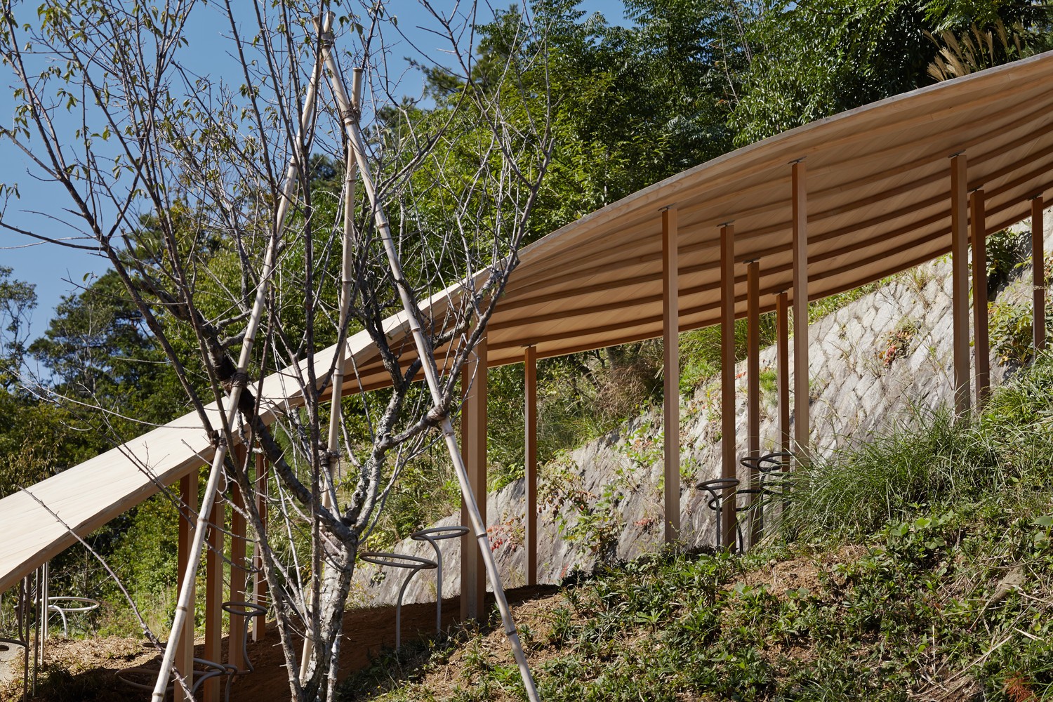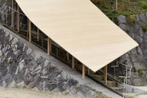 屋頂微妙地傾斜,以此來配合場地的坡度。其下,參觀者快樂而模糊地意識到,這個(gè)屋頂同時(shí)也是一堵墻。建筑物的空間體驗(yàn)意在提醒參觀者,他們是行走于山間,在厚實(shí)的層林之下。迄今為止,多數(shù)西澤的建筑是明亮、開敞而通風(fēng)的田野或花園,其中常常出現(xiàn)模糊了室內(nèi)外空間邊界的野花,這些花為建筑增光添彩。