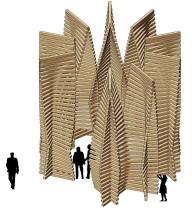 ▲每個(gè)木結(jié)構(gòu)橫梁之間旋轉(zhuǎn)2.5度, the wooden beam stacking is built by rotating each of the following elements at an angle of 2.5 degrees to the previous one