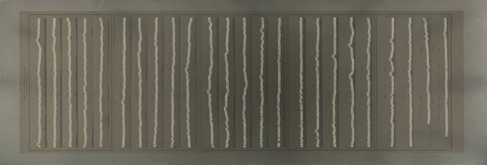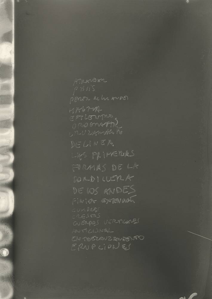 費(fèi)爾南多·普拉特(Fernando Prats)的作品在智利的自然與人文景觀以及其極端的自然沉浸感中獲取能量。名為“垂直的‘她’使我們停駐”作品源于對安第斯山脈、GabrielMistral智利詩歌與1875年智利共和國地質(zhì)學(xué)家PedroJosé Amado Pissis自然地理圖集作品的不懈觀察。