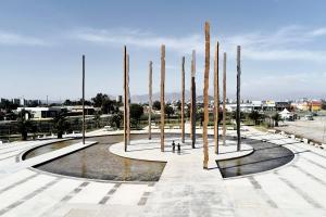 在直徑42米的水庫中央島嶼上分布著16根圓柱。每個(gè)都包含著Pedro José Amado Pissis所描述的安第斯山脈剖面的一部分。如果把它們一個(gè)接一個(gè)地連起來,將呈現(xiàn)出從Arica到Tierradel Fuego的完整山脈形象。