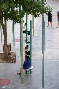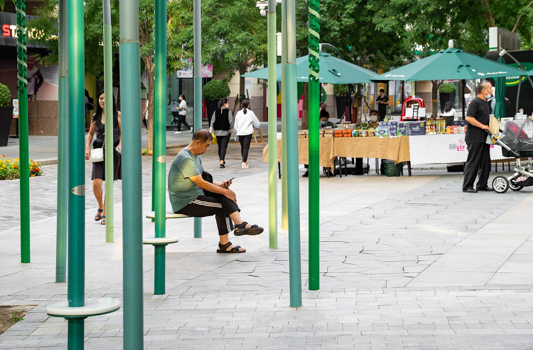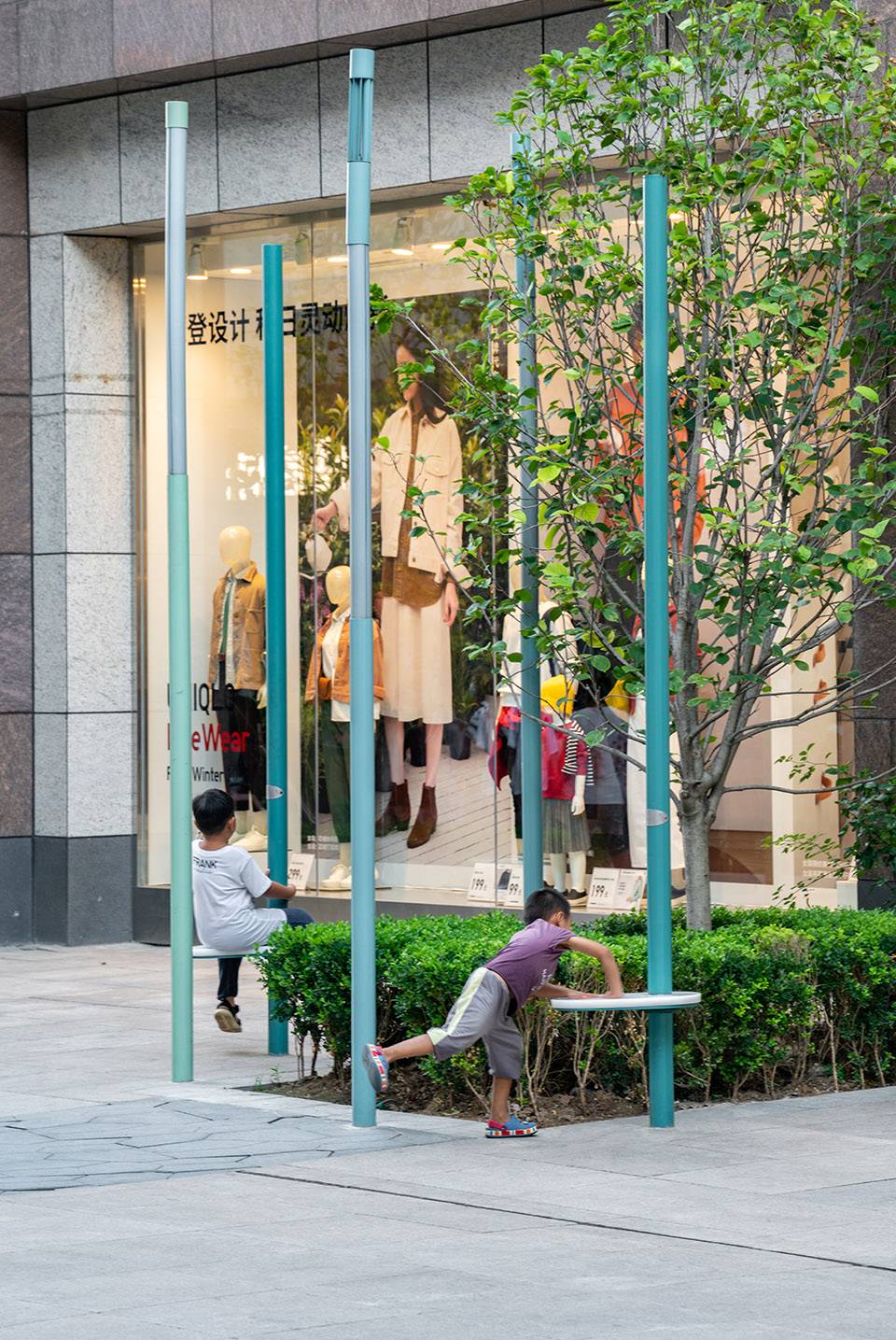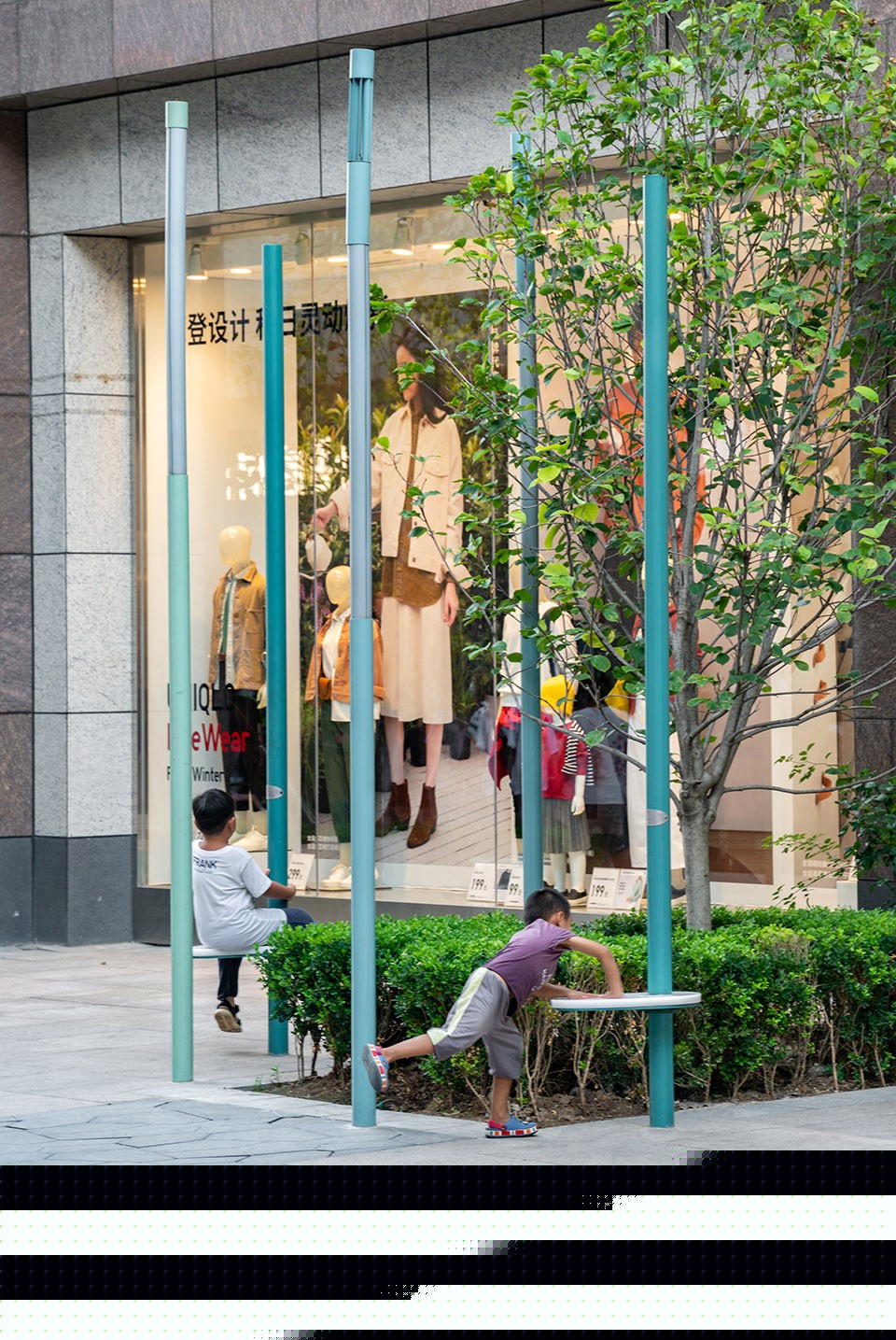 Design summary,by the landscape in the column space given to four different functions and features, generate more visitors for self-discovery value. Four kinds of column both artistic and practical value to meet the needs of different groups. Increase the communication between the users and the space of the venue, enhance the interactivity and interest of the block, can attract the crowd into the block. In the block, visitors can choose to walk directly or walk through“the forest”. Meanwhile, the column can keep the crowd to actively participate in the interaction, and people use it in various ways.