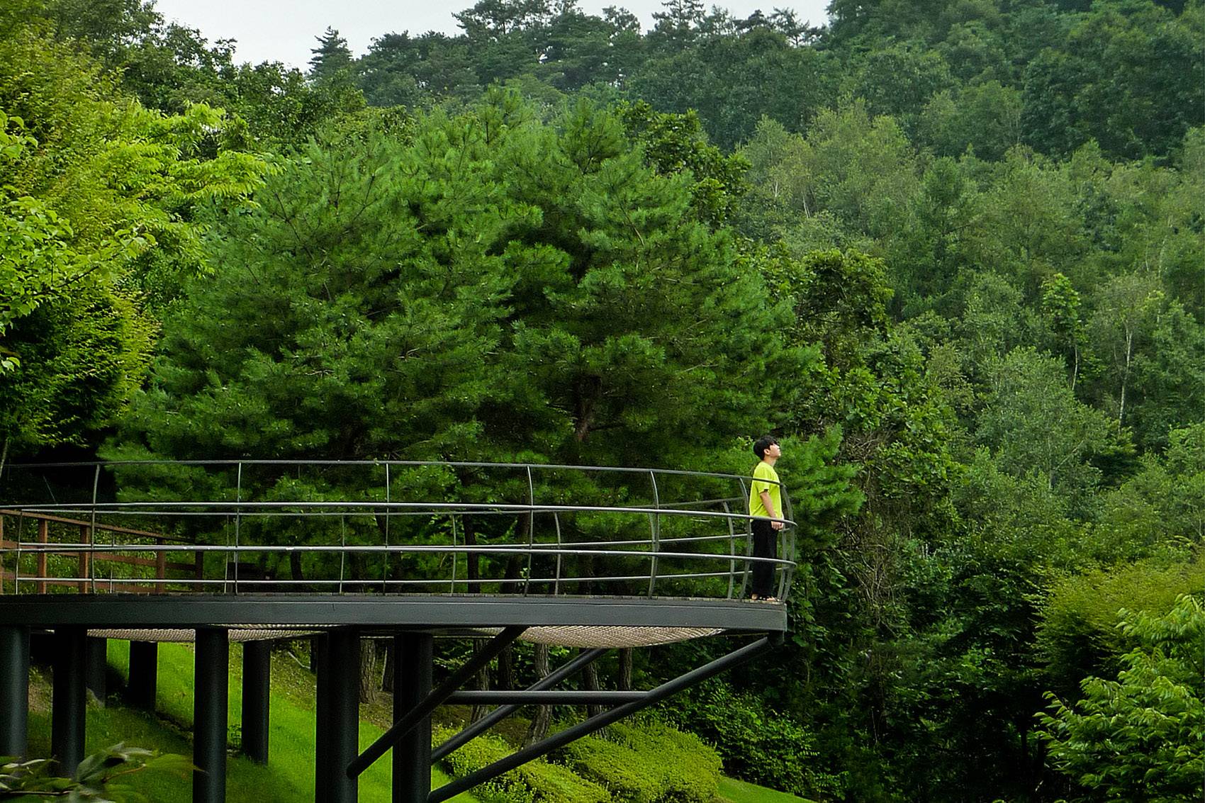 Lab D+H firstly proposed 2 designs with 2 levels of spaces sit on the slope, eventually design optimized into single layer with longer span sized design to provide with certain level of fear and levitated experience.