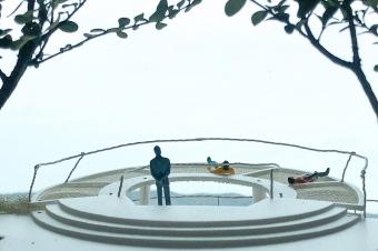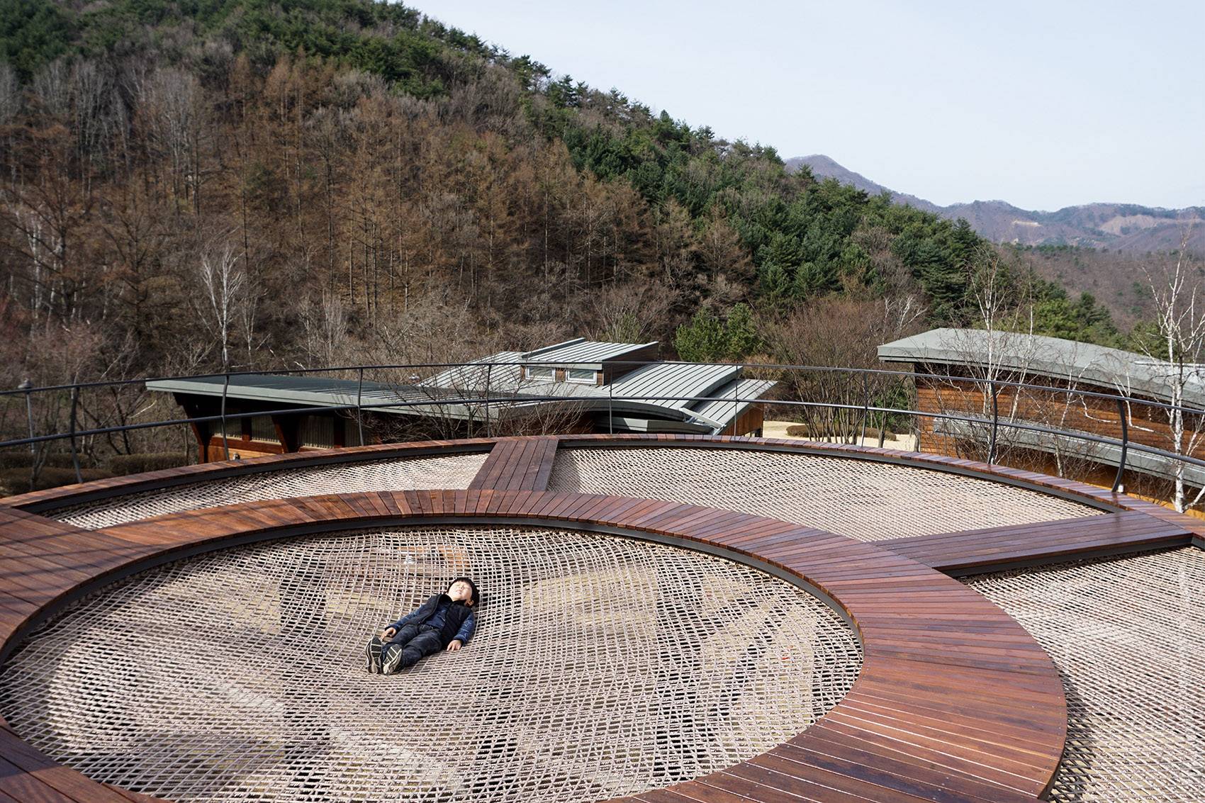 ▲吊床的邊緣設(shè)有一圈狹長的走道,可以作為觀景臺以及吊床的桌椅使用,narrow walkway at the perimeter edge serves as an observation space and a table for hammock use ? 崔榮埈, Aura EnA
