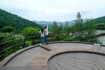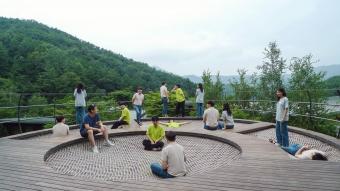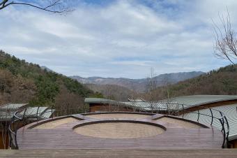 項目位于韓國忠州SK集團(tuán)旗下的Supex Center培訓(xùn)基地內(nèi)。項目場地坐落于朝北的山坡上,旁邊設(shè)有一個可同時容納200人的大型燒烤派對區(qū)。