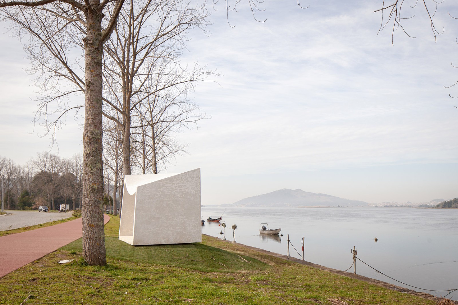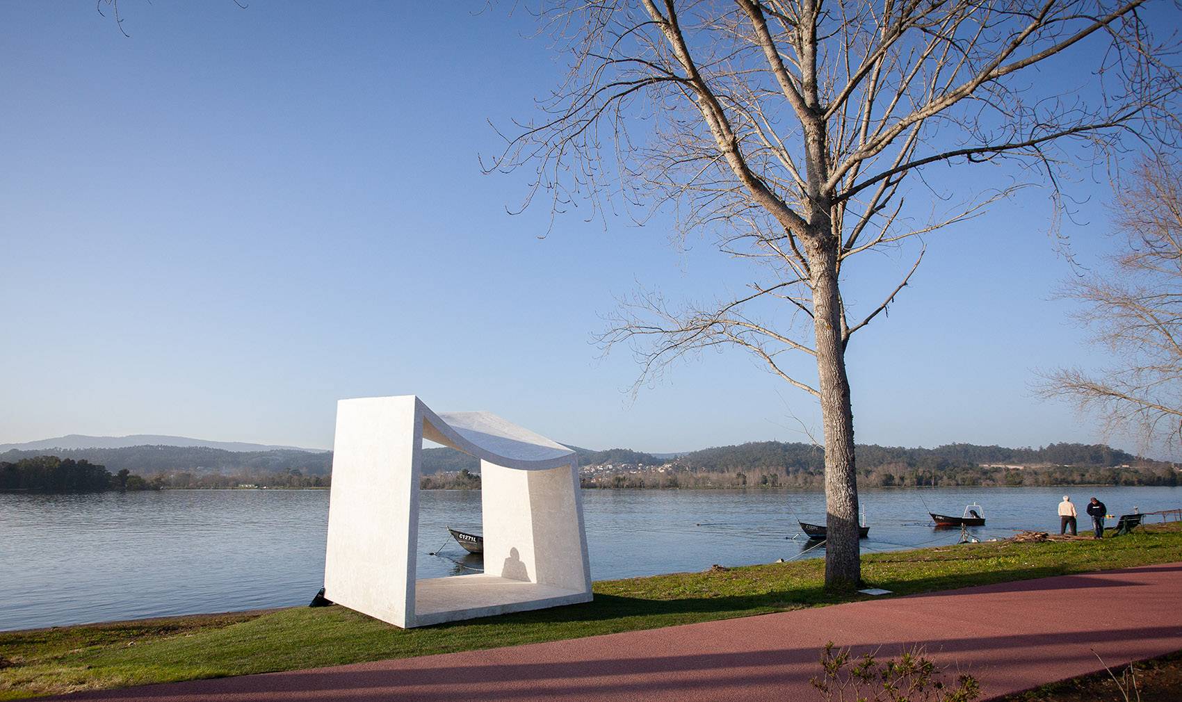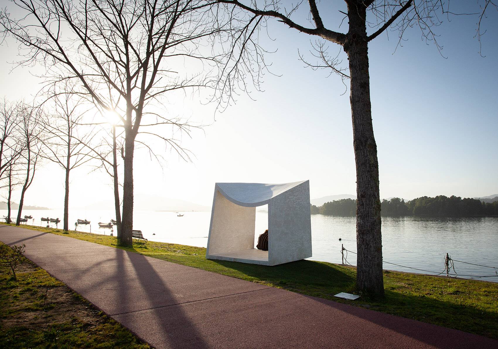 The piece draws a corner of contemplation, a frame that moulds and adjusts to the place, resting on the river shore and framing the landscape with the same languidness with which we experience the space. Here we recognize a set of unique elements that build their image and identity as a whole.