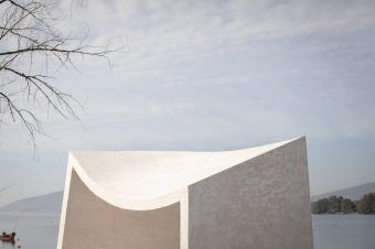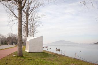 ▲項(xiàng)目宛如一尊潔白的雕塑,靜靜等待著人們的到來,the project waiting for someone to occupy it and fill the landscape? Filipa Frois Almeida