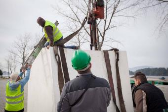 項(xiàng)目所在的場地處于自然之中,在這里時間彷佛慢了下來,人們可以完全沉浸在與環(huán)境的交流之中。設(shè)計(jì)師將裝置放置在景色優(yōu)美的河岸,它宛如一尊潔白的雕塑,靜靜等待著人們的到來,隨后,將一切和諧地融入自然風(fēng)景。精心設(shè)計(jì)的形式與構(gòu)圖,使得項(xiàng)目與當(dāng)?shù)丨h(huán)境完美結(jié)合。