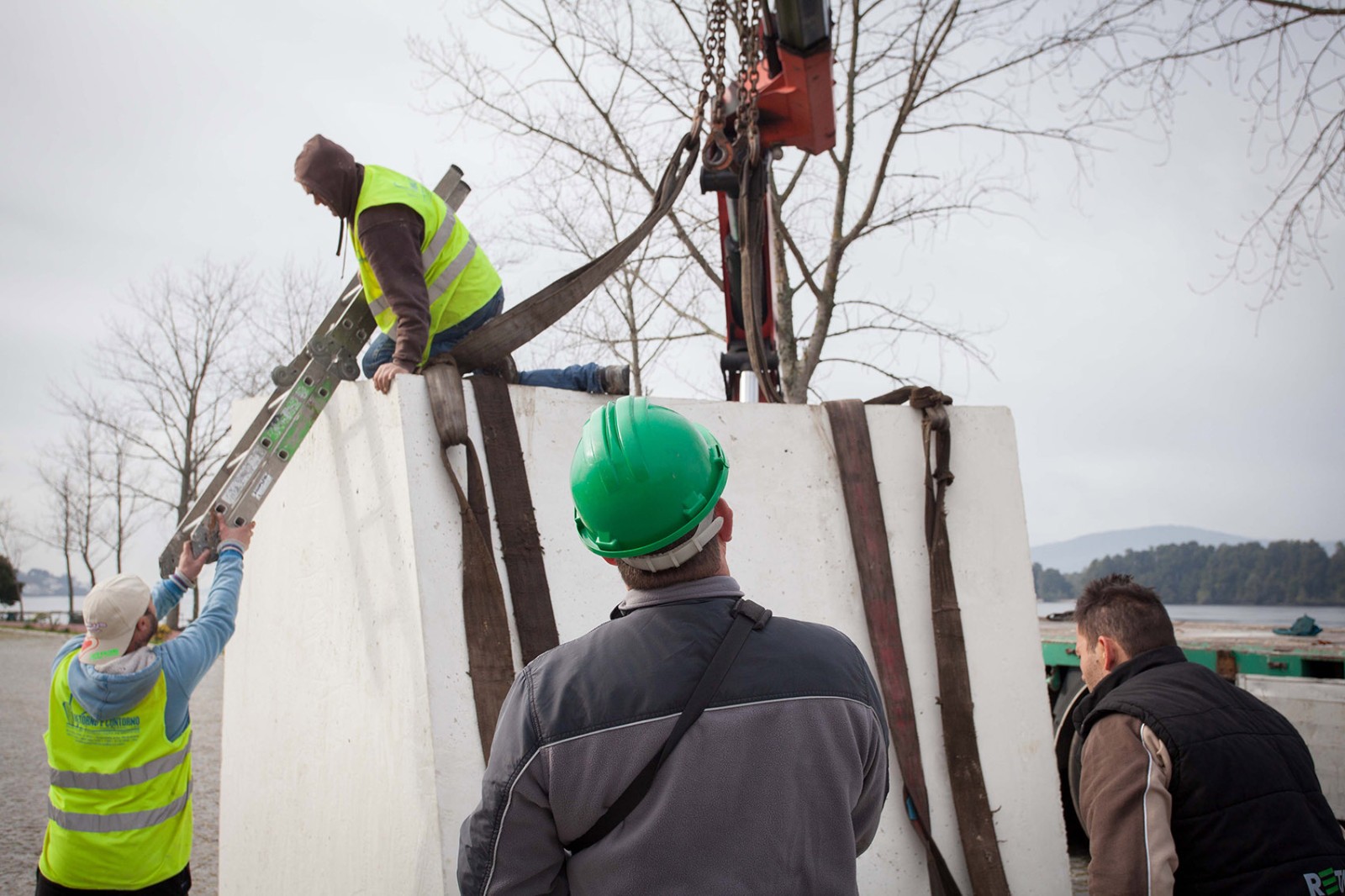 The area of intervention is a place where time seems to slow down, allowing a complete communion with the surrounding environment. It is here that, suddenly, the piece integrates the context, when the authors decide to put it in front of the river, waiting for someone to occupy it and fill the landscape. A formal and compositional relationship that makes the piece very local.