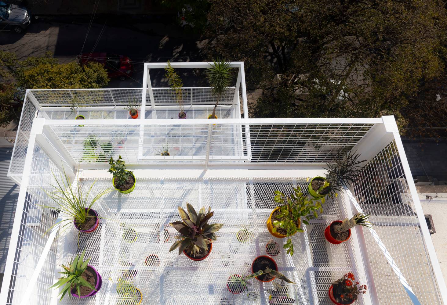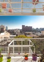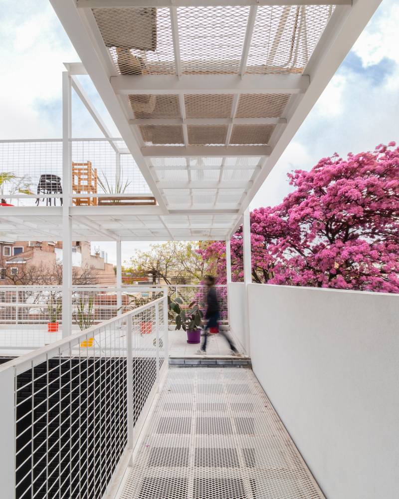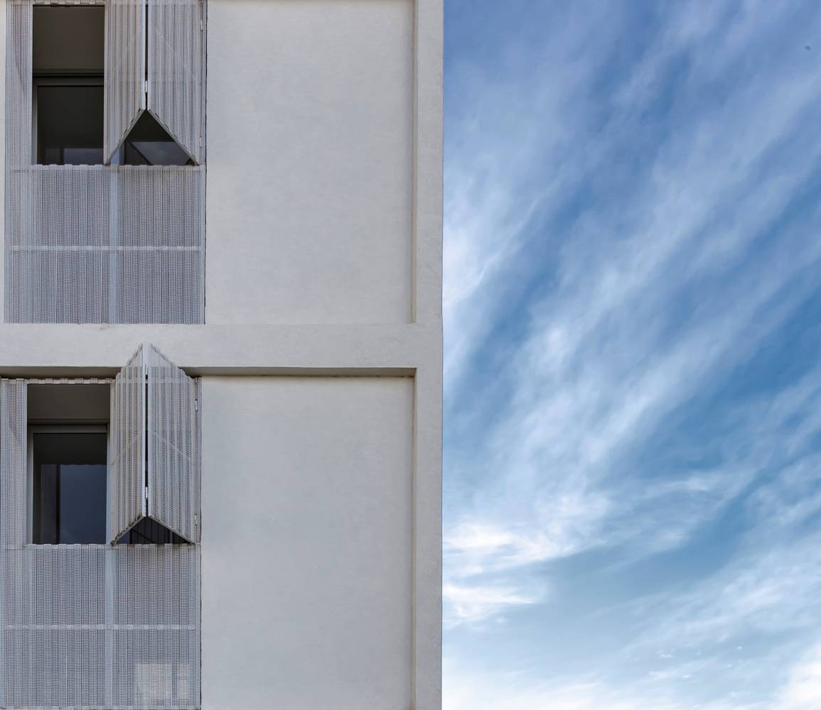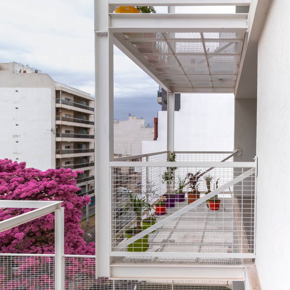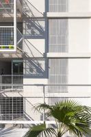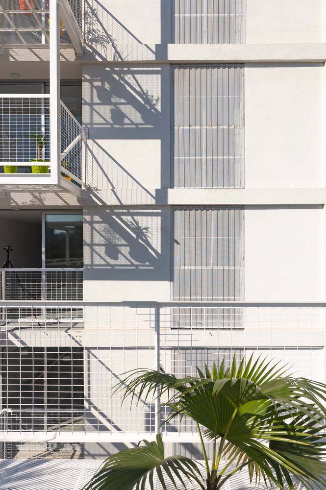 規(guī)范規(guī)定的的分層在這里成了一個(gè)有利條件,設(shè)計(jì)師們?cè)O(shè)計(jì)了一系列金屬網(wǎng)格陽(yáng)臺(tái)作為主結(jié)構(gòu)的附加物,這樣一來(lái)每一個(gè)公寓都可以有獨(dú)立的室外延伸空間。