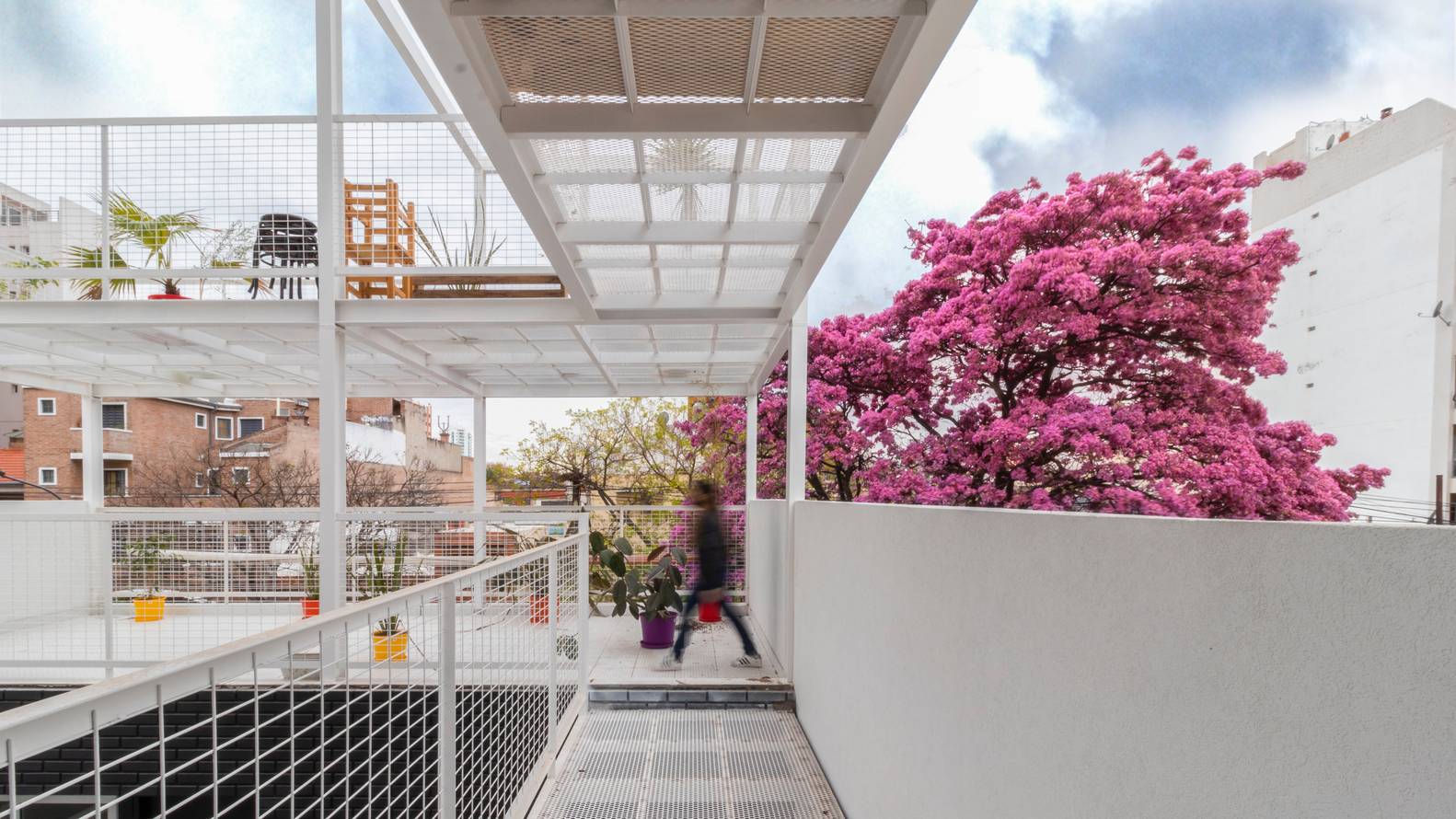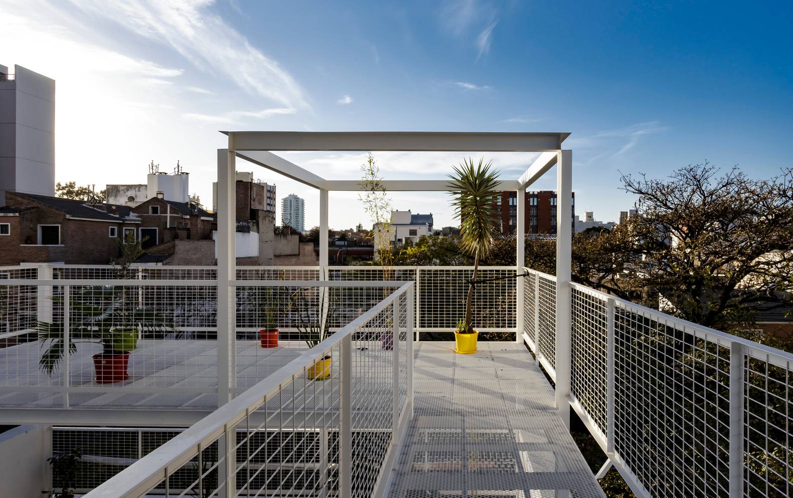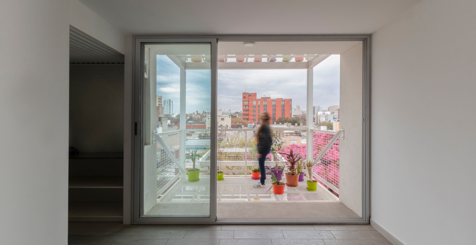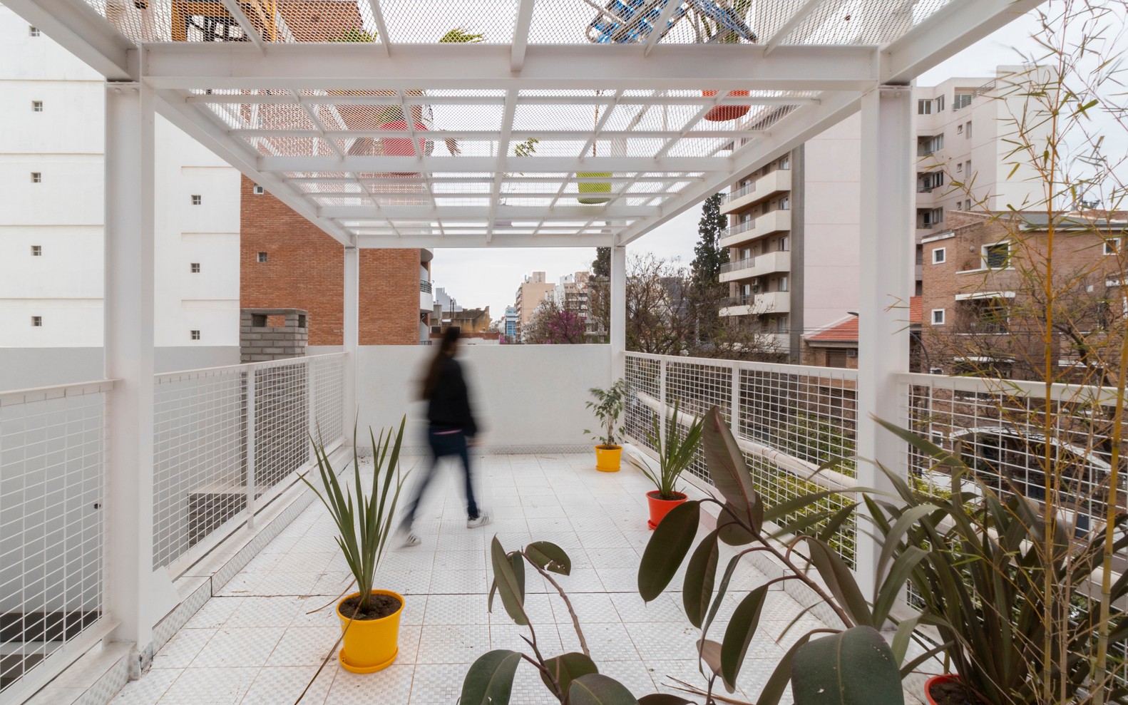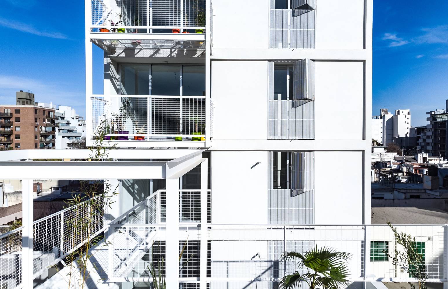 規(guī)范規(guī)定的的分層在這里成了一個(gè)有利條件,設(shè)計(jì)師們?cè)O(shè)計(jì)了一系列金屬網(wǎng)格陽(yáng)臺(tái)作為主結(jié)構(gòu)的附加物,這樣一來(lái)每一個(gè)公寓都可以有獨(dú)立的室外延伸空間。
