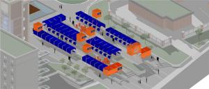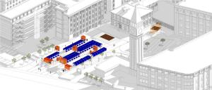 這一“并置”順理成章地延續(xù)到了這次市集的設計上來。在周邊三大百年以上的古建筑圍合的廣場上,我們需要什么樣的市集呢?我首先想到的是“時代感”,越是現(xiàn)代的,越能與周邊的古典氛圍產生強烈的對比。用現(xiàn)代的構件和古典的建筑對比并置,增加場地的吸引力,從而達到更加開放和多功能復合使用的公共性。