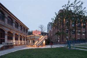 The predecessor of the Pinghe Packing Factory on the south side of the square was an industrial building located in the English Concession of Hankou. It functions as a cotton packing warehouse and was built by the British businessman Liddell brothers in 1905; when we designed the indoor public space of the Pinghe Packing Factory two years ago, It also hopes to increase the publicity of this area; Party A hopes to convert this industrial building into a cultural and creative office function. We use the newly implanted modern material "steel plate" to blacken it to wrap the walls of key new public spaces. The building materials and texture of the old building are retained, forming a juxtaposition of old and new materials in the same time and space.