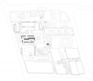 這個場地上較新的建筑,在修建隧道的2004-2008年業(yè)已拆除,隧道正上方已經不被允許再新建建筑物;作為一個城市交通設施的地上配套空間,它是消極和封閉的,且不被公眾頻繁使用;我們最初的景觀設計方案,是想打造一個有圍合廊架的中心廣場,希望通過廊架來串聯(lián)場地不同年代的不同建筑,利用廊架來創(chuàng)造停留;這個景觀方案最終并沒有實現(xiàn),只保留了中心硬質廣場,周邊不同區(qū)域采取了不同的設計策略來營造小環(huán)境,比如臺階式綠地等。中心這個空曠的廣場,為后來復合空間的多功能利用預留了可能性。