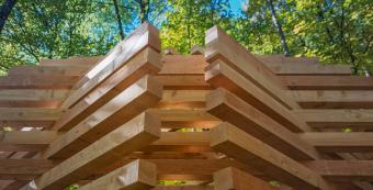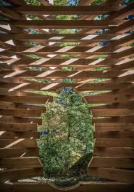 ▲裝置使用基地上的樹木建造,the installation is made of wood sourced from the site ?Corrado Griggi