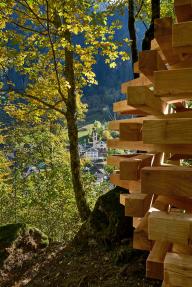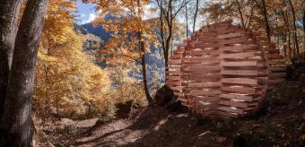 The project consists of the construction of 10 timber architectures / sculptures in the local woods of Rossa. The installation of the first work was completed in October 2020. Set in the woods of the village of Rossa, in the Calanca Valley, the project, undertaken by Davide Macullo Architects with the support of the RossArte Foundation, the municipality of Rossa and the Swiss National Park Val Calanca has involved the inhabitants of the valley, visitors and institutions in working towards a common goal and contributes to the debate on the enhancement of rural areas. These architectures / sculptures form part of the wider work of the foundation, giving Rossa and Val Calanca an identity as a destination for work and life, as well as for tourism.