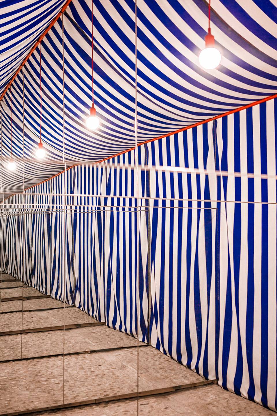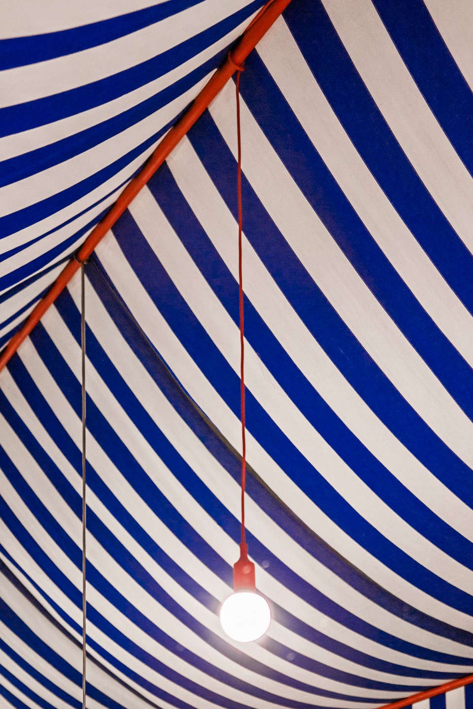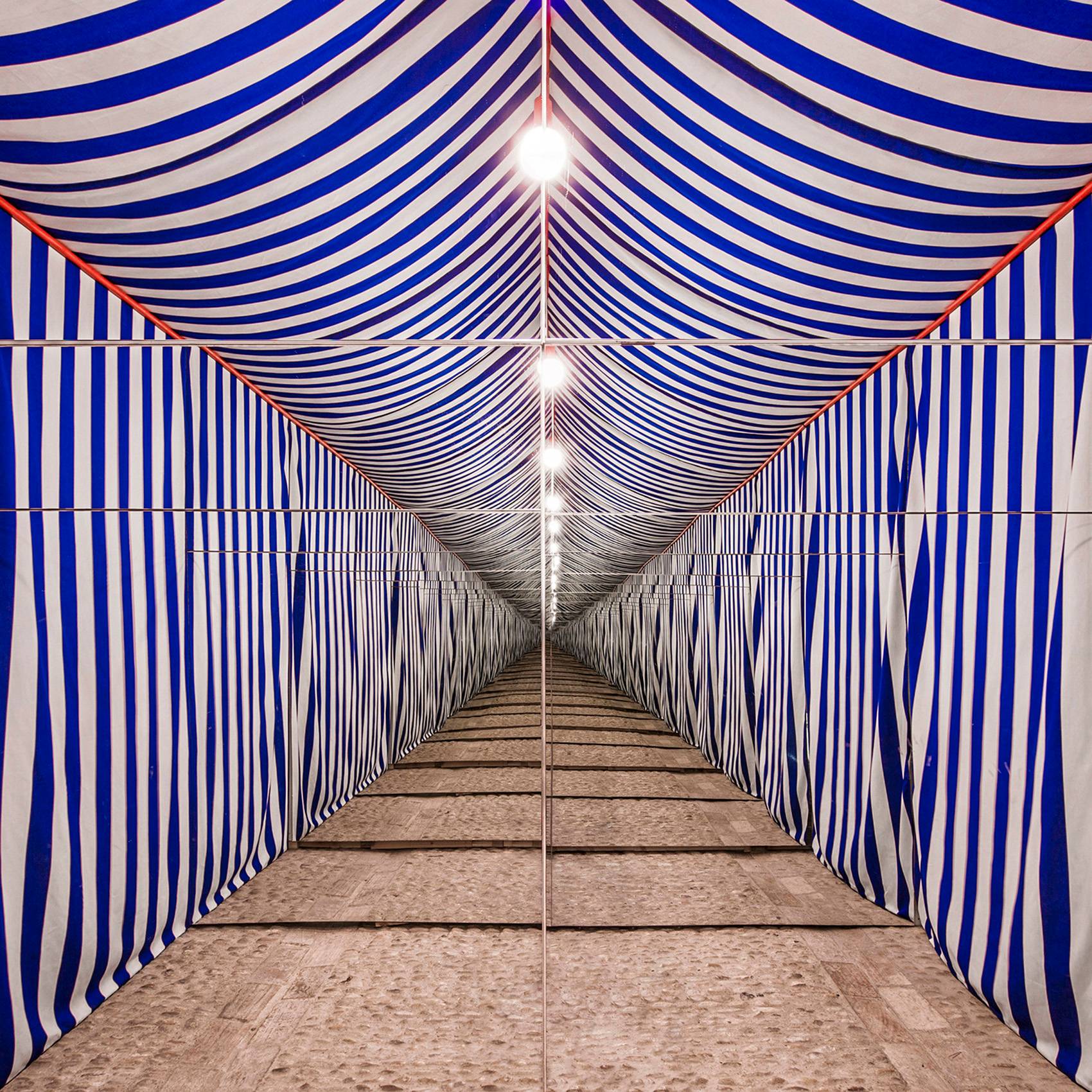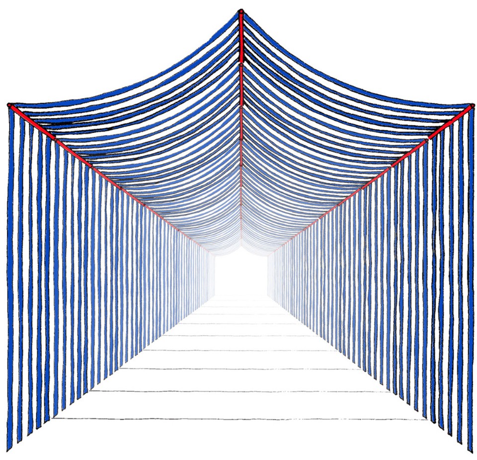 ▲裝置內(nèi)部,明亮的、歡快的、瞬息萬(wàn)變的構(gòu)造性空間,interior of the installation,a light, festive, ephemeral and tectonic space ? Eugeni Bach, Javier Antón