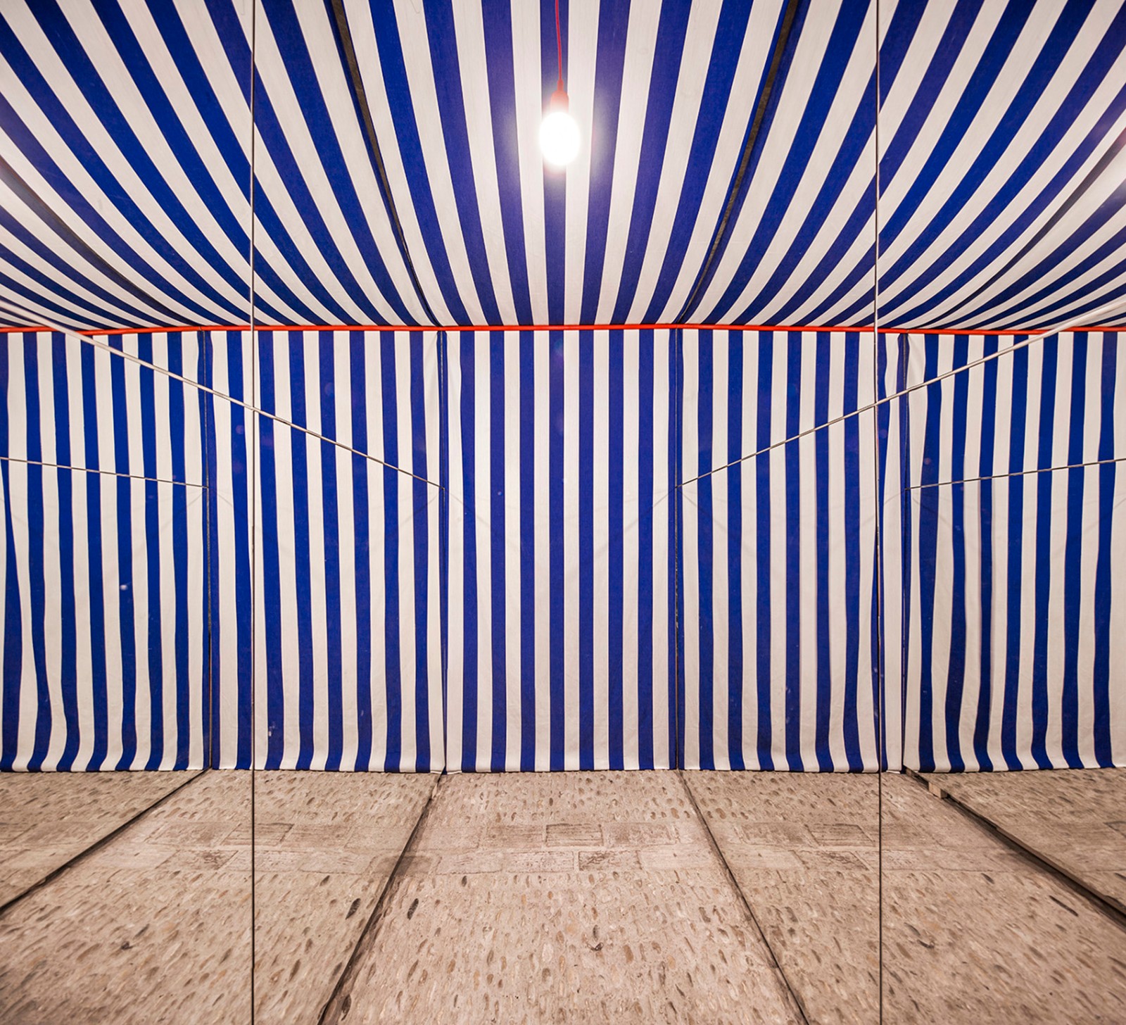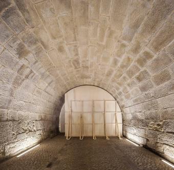 After the experience, both spaces, stone and textile, heavy and light, vaulted and catenary, severe and festive, stereotomic and tectonic, overlap and allow for an understanding of the cellar that reflects both its reason for being and its opposite.As stated in Lewis Mumford’s famous book on the history of American architecture, once a space is apprehended in its essence, everything can be summed up by what it contains: “sticks and stones”.