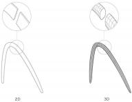 雕塑的制作采用了獨創(chuàng)的FiDU技術(shù)(自由內(nèi)壓塑形),能夠在金屬薄板中創(chuàng)造量身定制的、適應(yīng)力的方向的超輕結(jié)構(gòu)部件。仿生拱在被切割出來之后沿著邊緣焊接在一起,隨后在內(nèi)部充滿壓縮空氣。這種結(jié)構(gòu)可以將2D的物體改變?yōu)槟陀们逸p盈的3D形式。