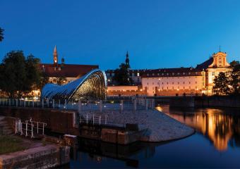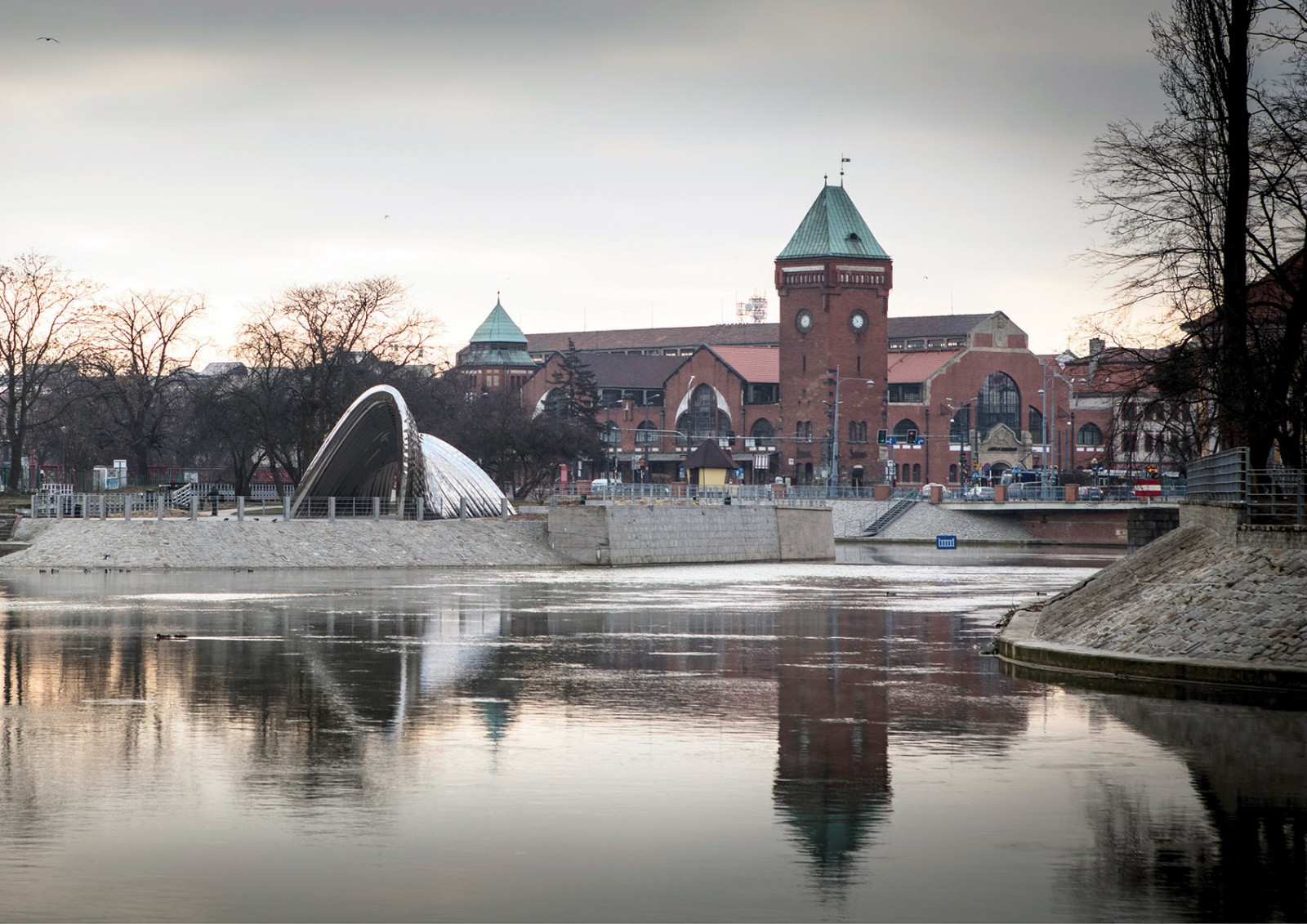 NAWA is the crowning piece of celebrating European Capital of Culture – Wroc?aw 2016. The inspiration for use of arc construction was inspired by nearby Cathedral of St. John the Baptist, Market Hall, The Ossolineum and its library. The form of bionic arch goes along with shape of the very island and corresponds with surrounding architecture.