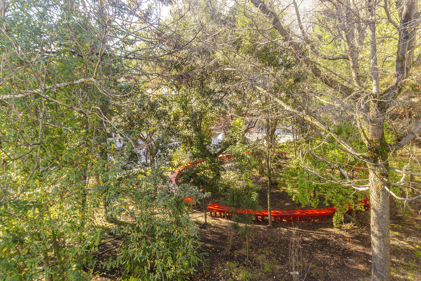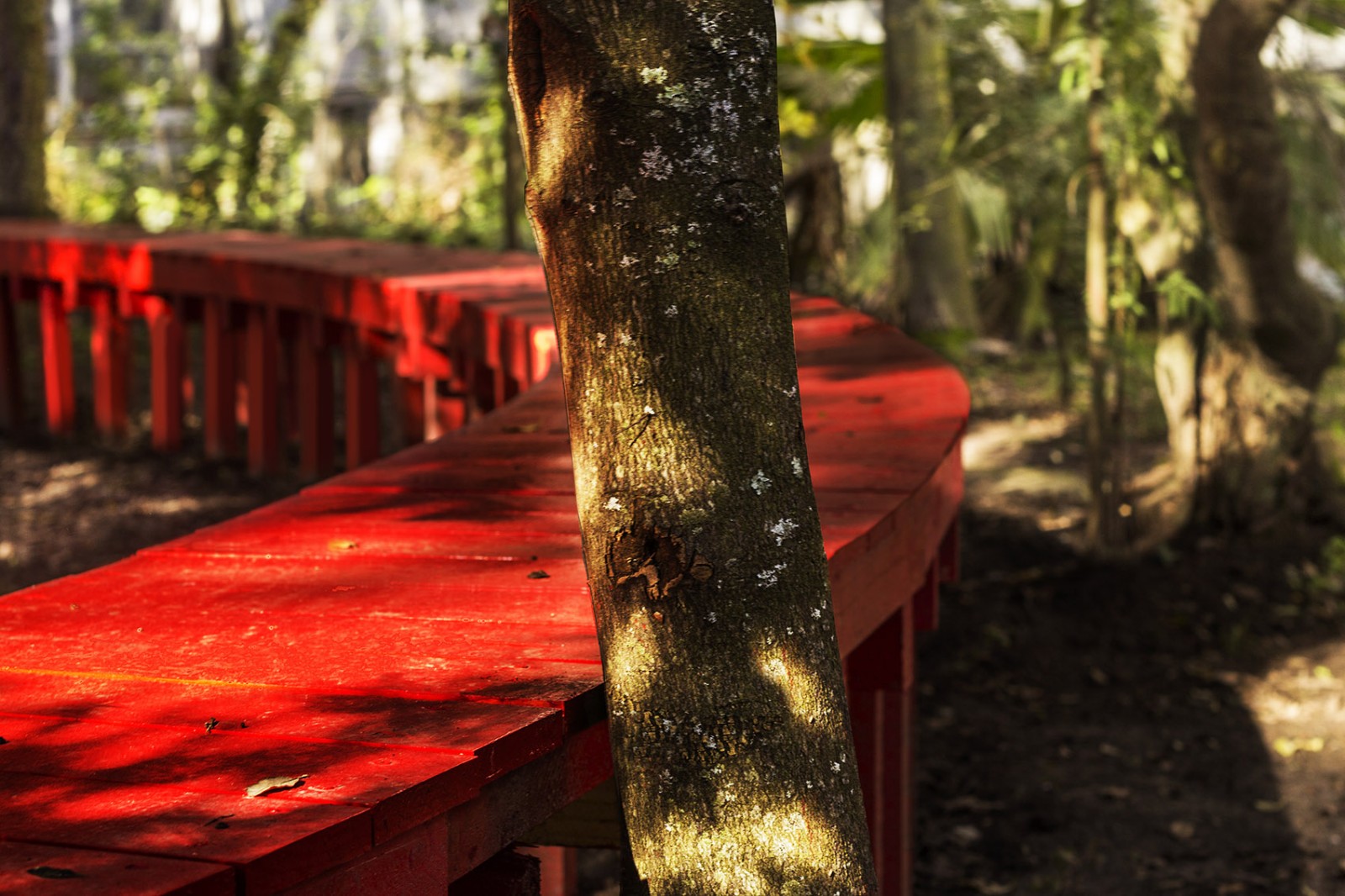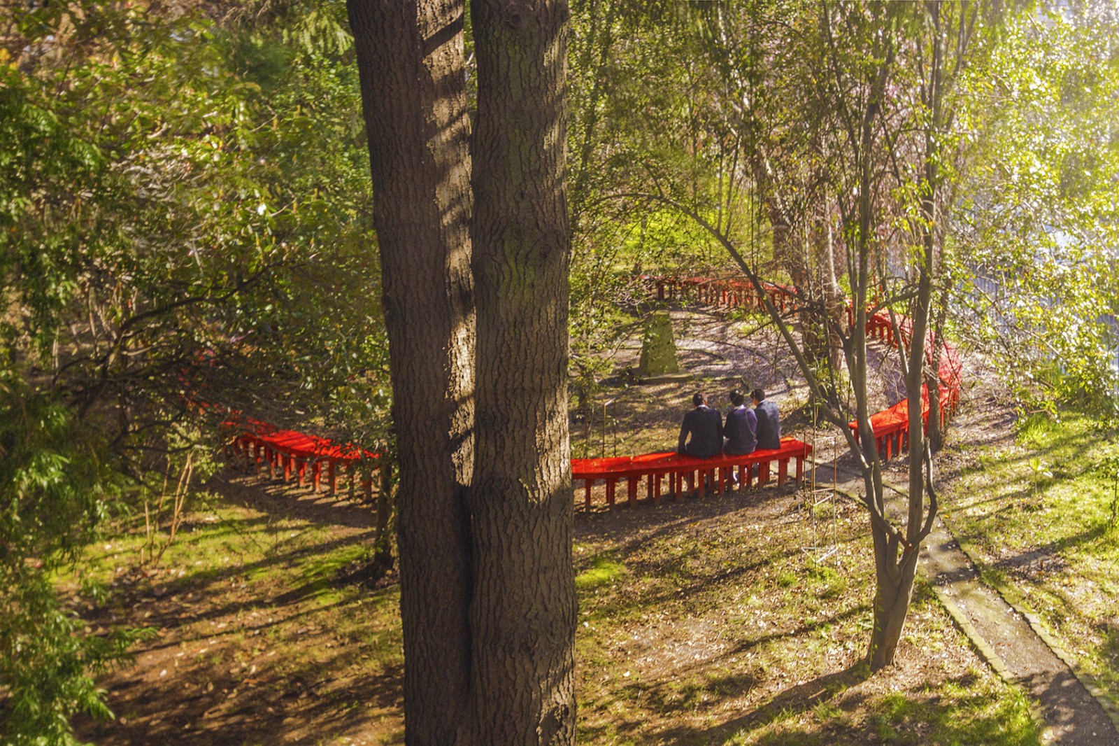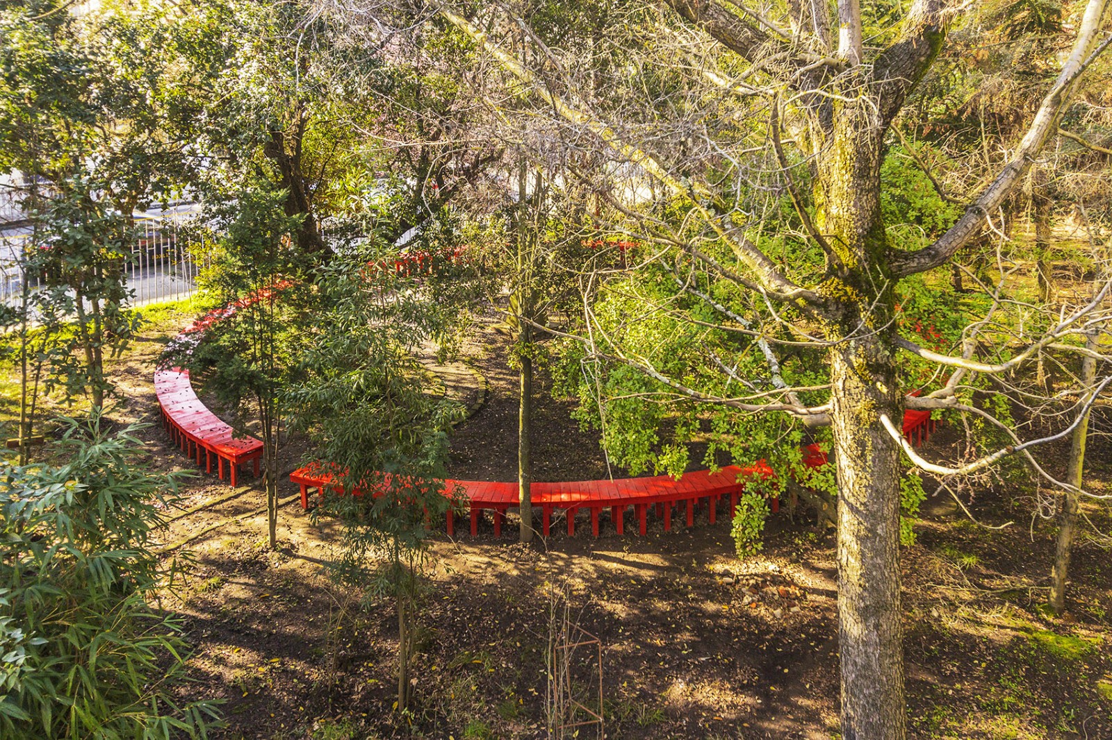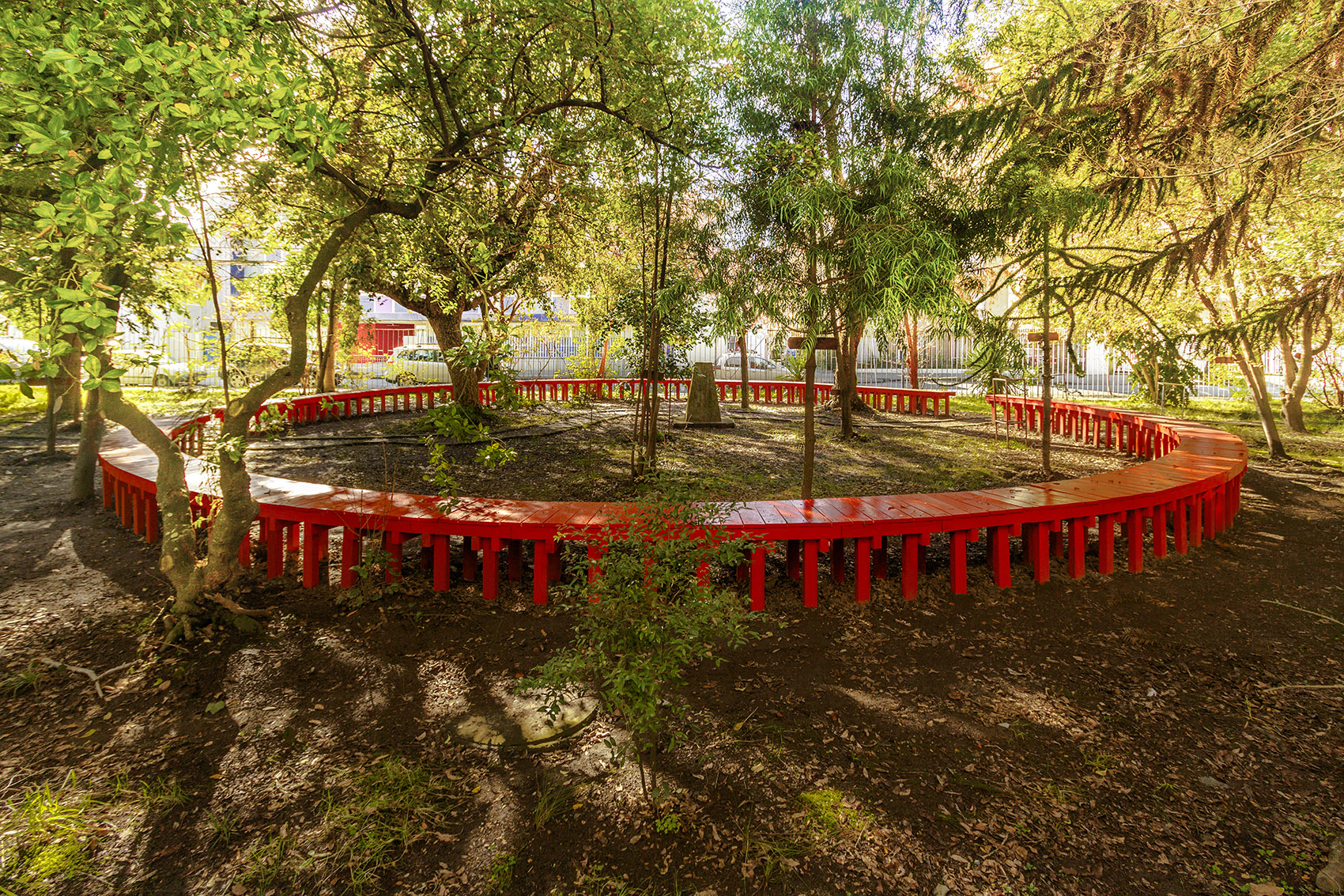 裝置圍合出的小空間可以變身為課堂、工作室以及學(xué)生們課外聚會(huì)的場(chǎng)所,將Alejandro Merino植物園重新融入校園日常生活中。此外,引人注目的紅色長(zhǎng)凳還將公園重新帶回人們的視線中,使公園成為“Penquista”(康塞普西翁市民的統(tǒng)稱)社區(qū)的標(biāo)志性場(chǎng)所。